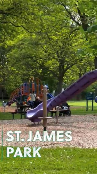 Stretching between Edgewood and Grant streets, St James Park is home to a baseball diamond, two tennis courts, a large open space for soccer, a hard-surface basketball area and a shady playground.
