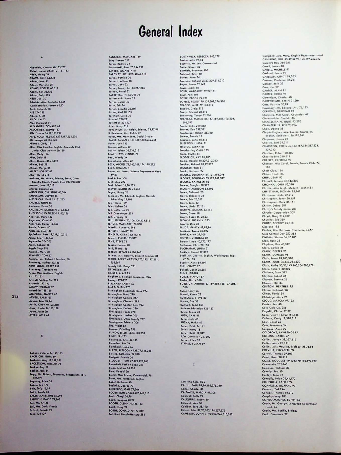 Coui.try Coo,h. Vo~ty Club 217.133~12 amorasi john lt,312 amwegroxanne 26 anderson christine 65,304 anderson culver 65 anderson jean 65,lll,263 andrea john 6' anderson karen20 anderson kathlleen 0 65 161 anderson kathleen J , 6', 176 andersonmary angermancarol'° angerman nancy 11,151 anuzisedward , ,0 apesechecindy40 appledornsteveIU2'..310.ll2 apsey cheryl40 169 ...-:io•.10$ areen richard,a argyleshop 291 arminski, mark arminski tom 67 armintor mr robertu~,_,;.., 60 armstrong, audrey armstrongdarby fl armstrong, theodore 40 arner, miss marilyn Mll2,1:ll """•""'••"'tC..29$ Aidt••· 192-193 askew william 67 -., atkinson nancy 67 atwell, larryaulgur ,. johnw, austin cindy40,IDS.llOawreylinda2'.163,111 ayers, janet120 ayers, meta