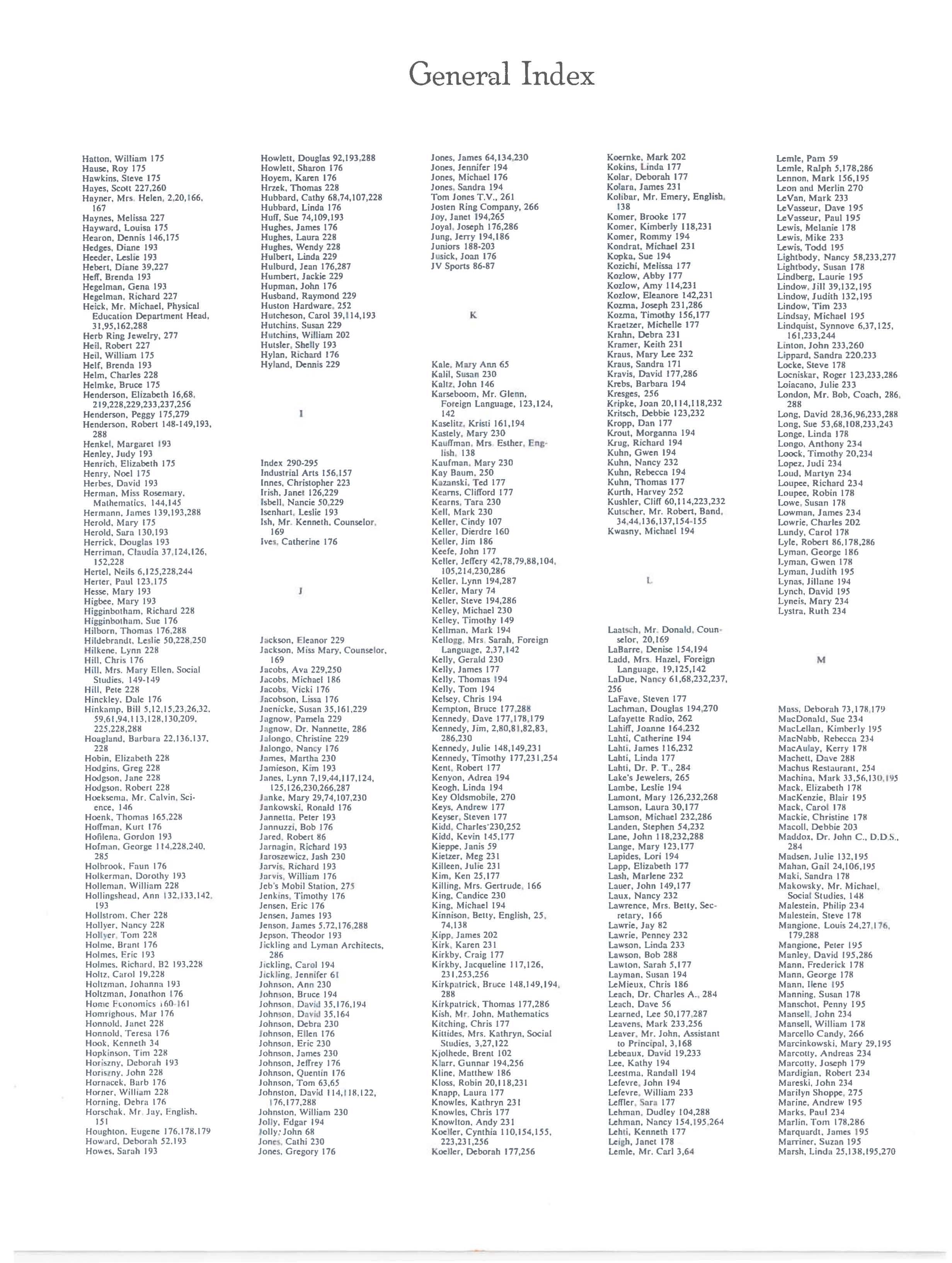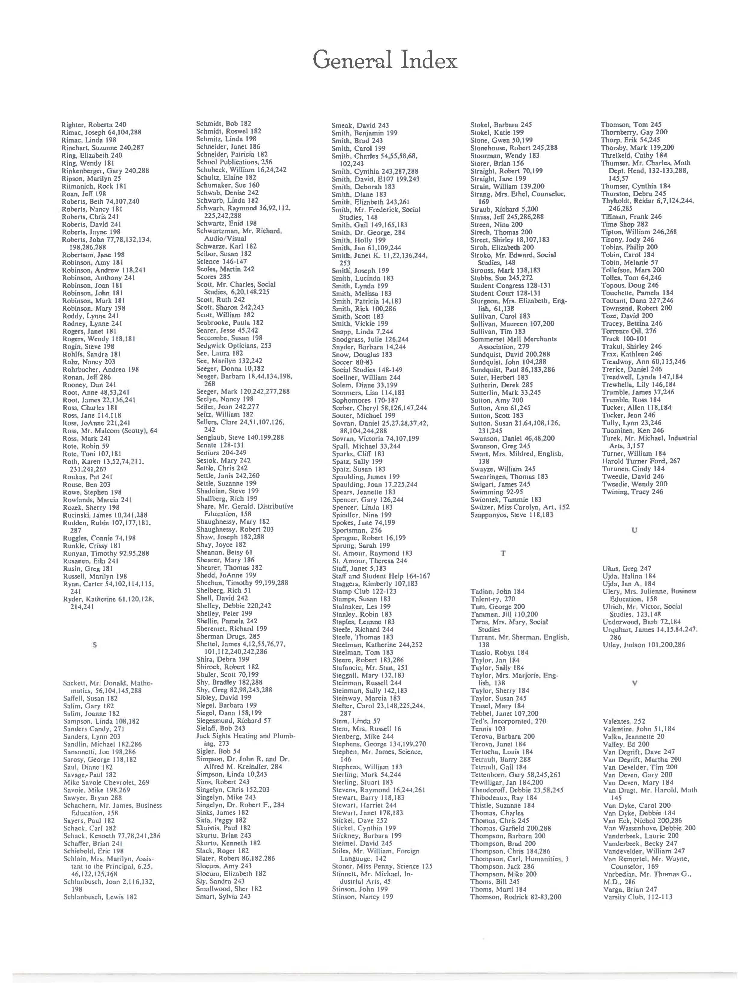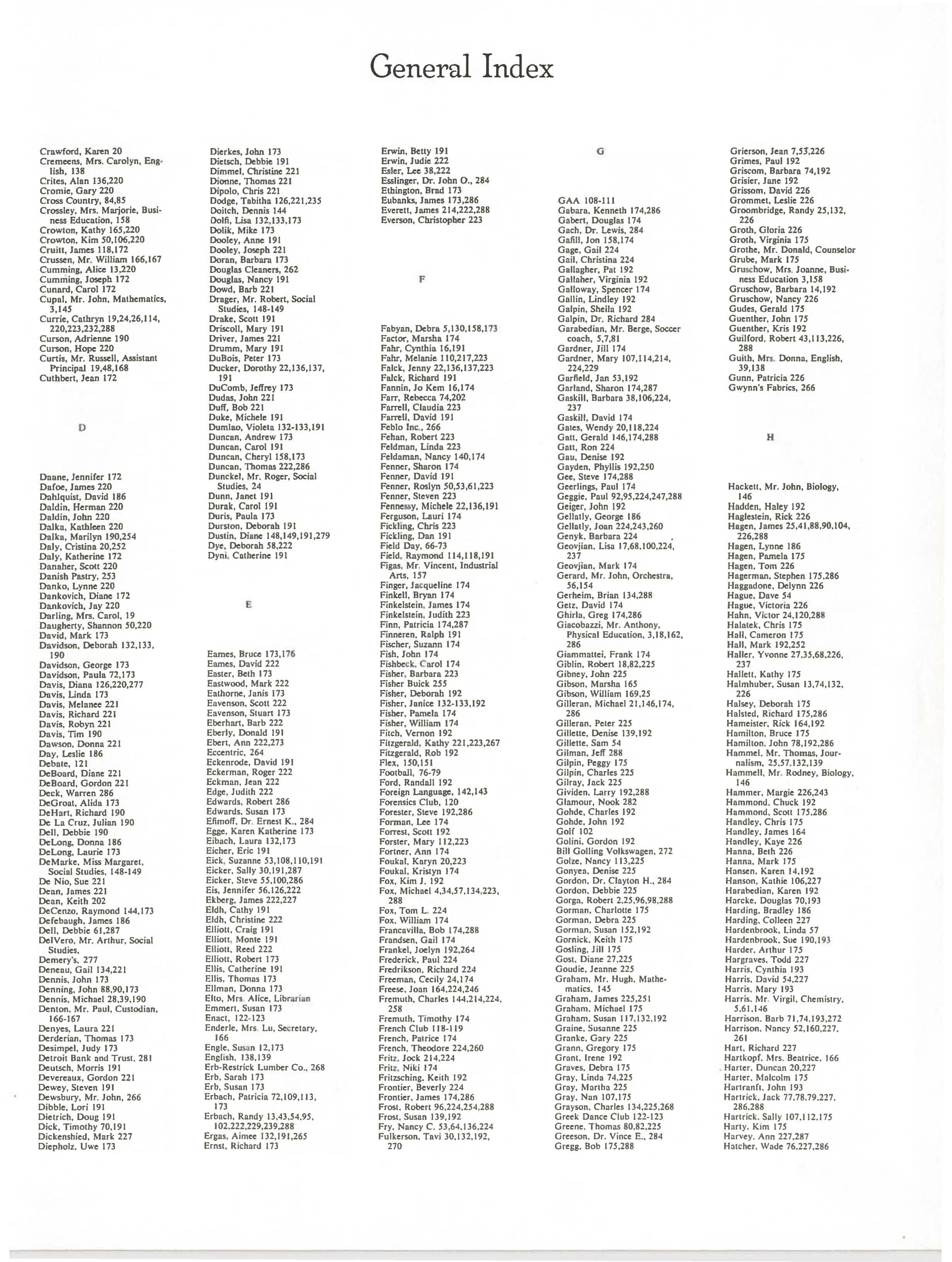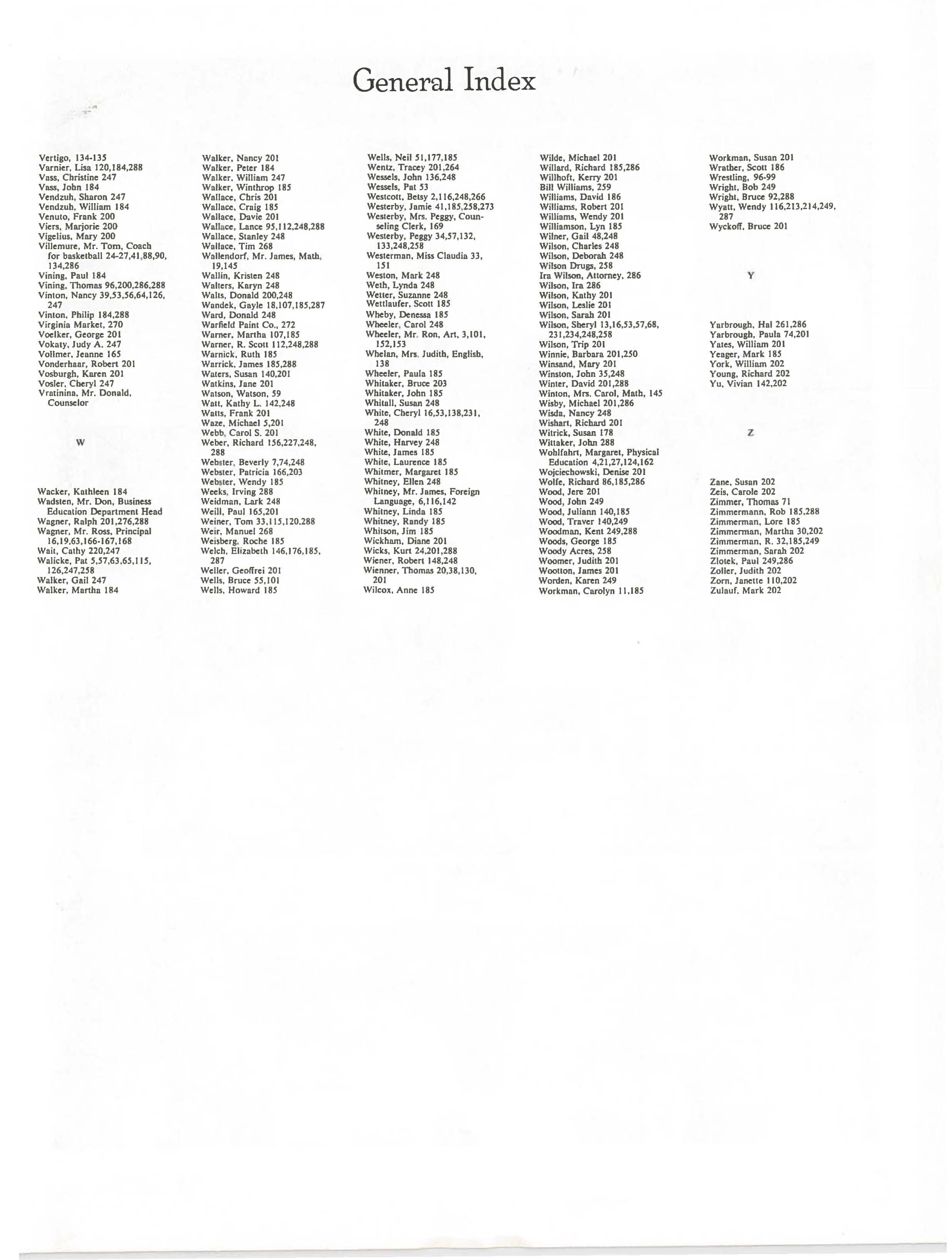 Buechler, Ste ve 31,44 ,57,79, chundrlik William 172 Abbonizio, Anloinettc 214 Ball , Mrs Doris, Fore ign Bishop, Dale 158,171,288
