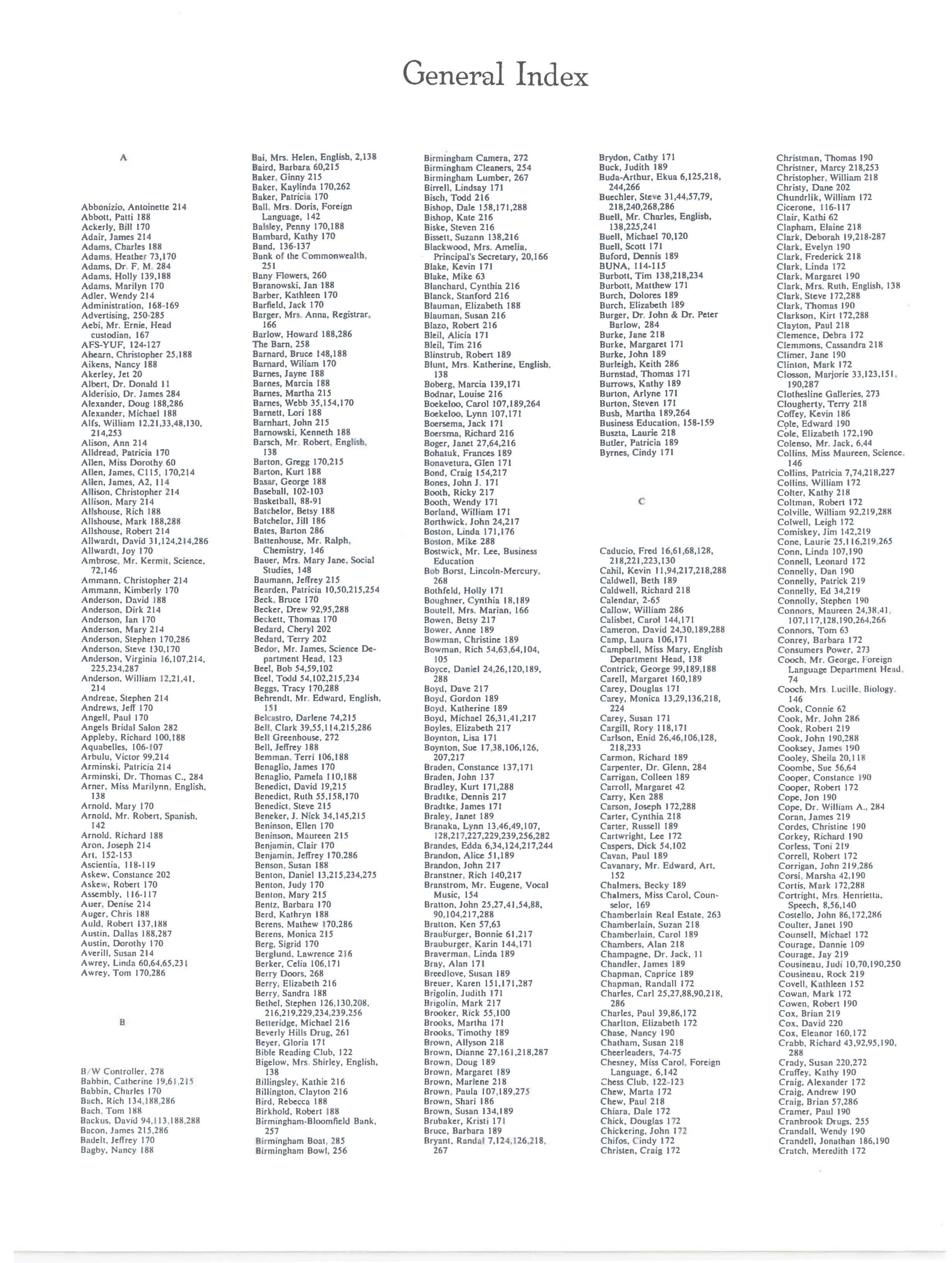 Brydon, cathy 171 Christman, thomas 190 baird Barbara 60,215 birmingham Cleaners, 2S4