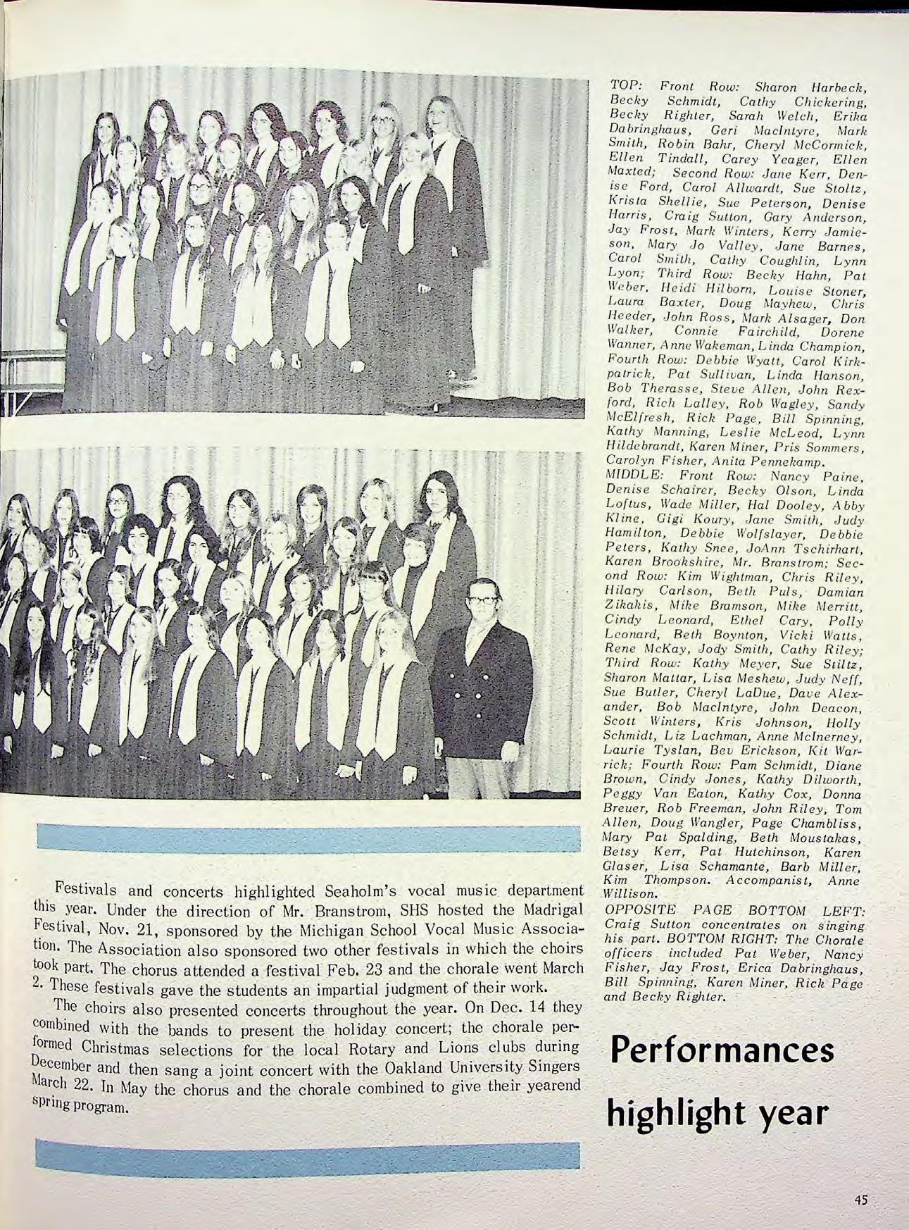Fearing, Jamie Caywood, Cathy Caldwell, Jill Nyland, Rose mary Pill ing, Sue Va l entine, MaryJo Eckhout, Debbie H itch, Robyn Stacey, Darrell Toutant, Leigh Rodney , Sal ly Voss, Ka l hy Molnar, Crack Washburne, Amy Winsand, Lisa Schumacher, Greg .Shoops, Jerry Holderman, Bob Denning, P e t e Maim i ng, Jeff L eestma, John Woom-