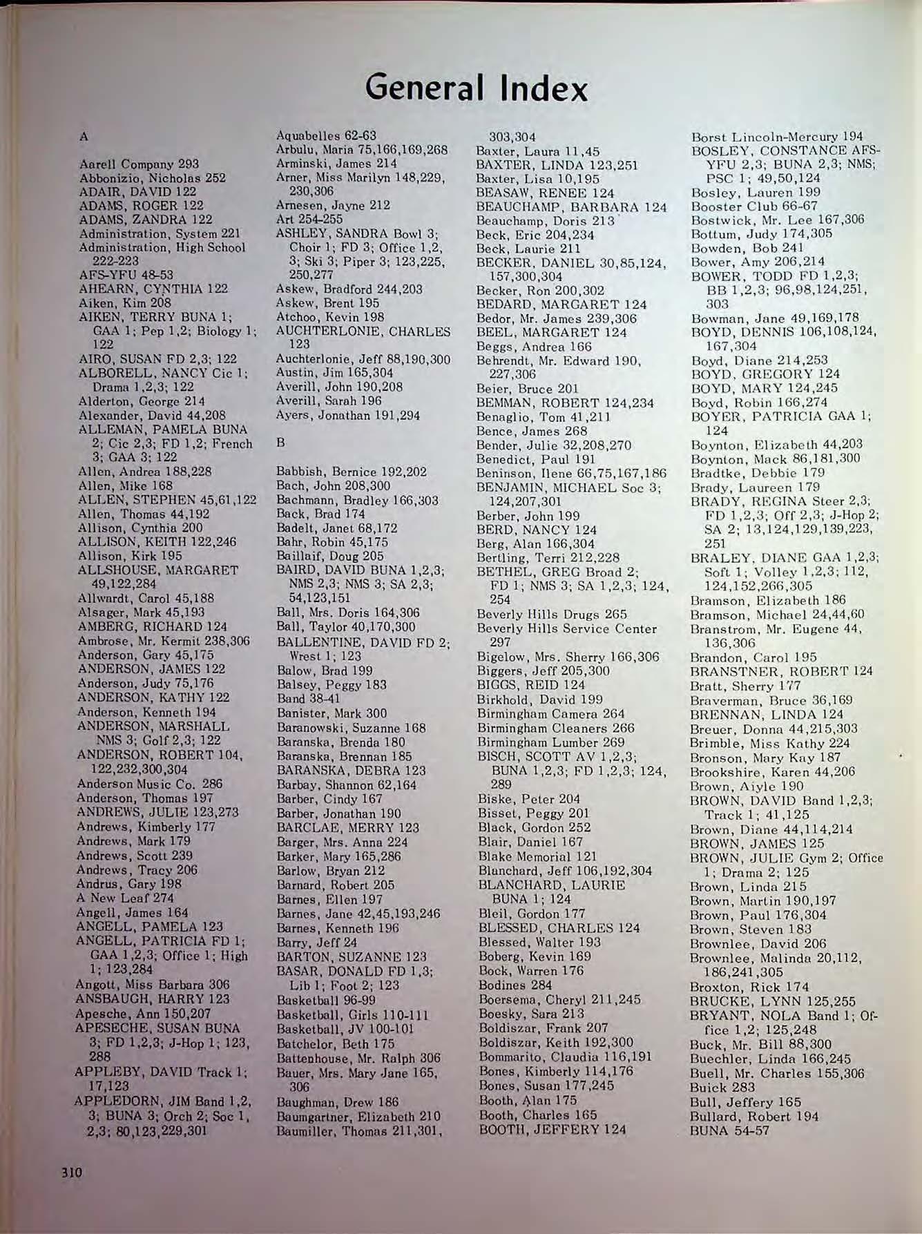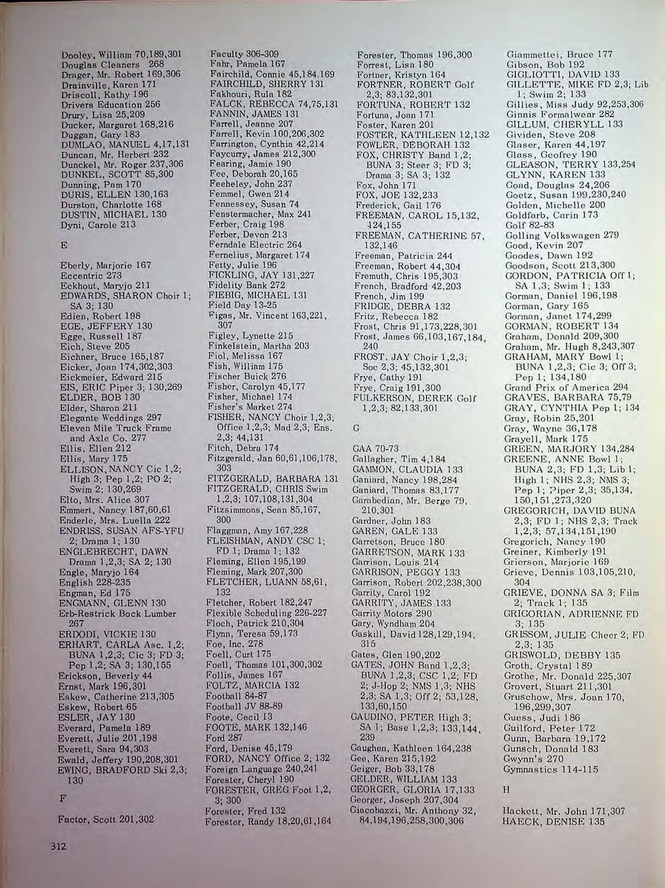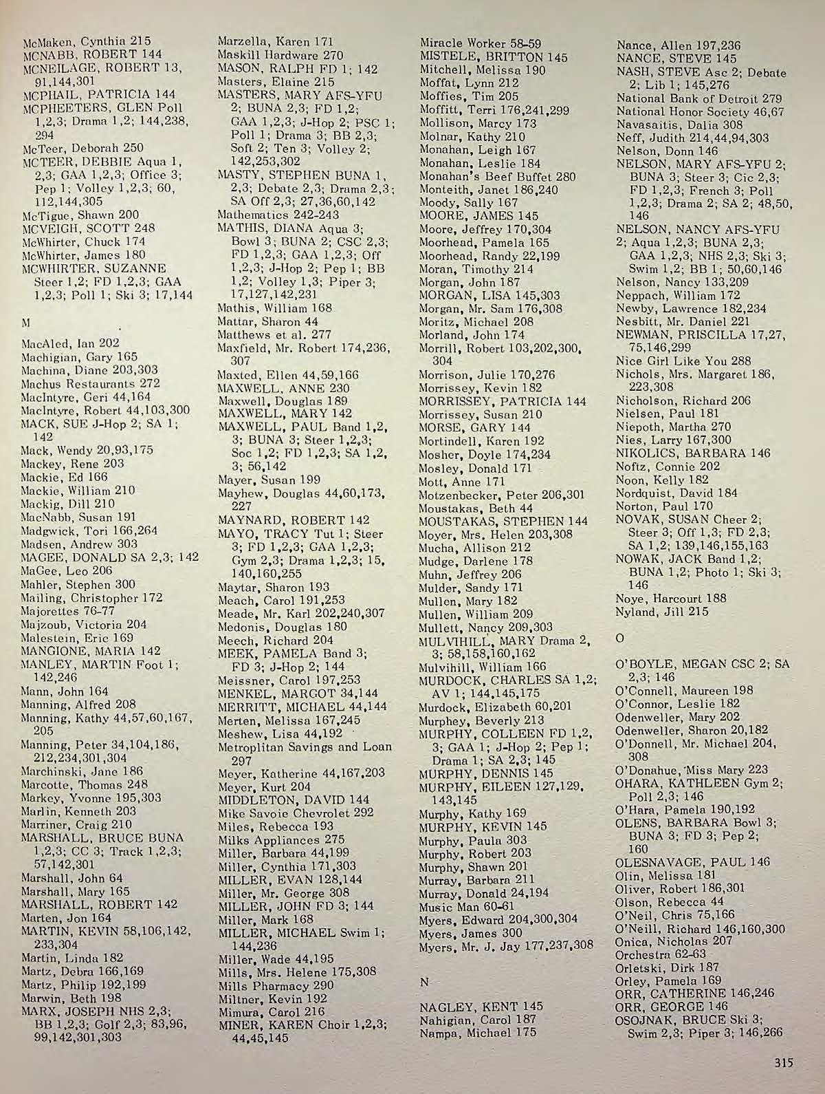 YAROSKI, CAROL 160 ,267 Y eager , Carey 44, 167 YOLLES, NANCY FD 1,2,3; Gym 2; Drama 3 ; SA 2; 160,265
