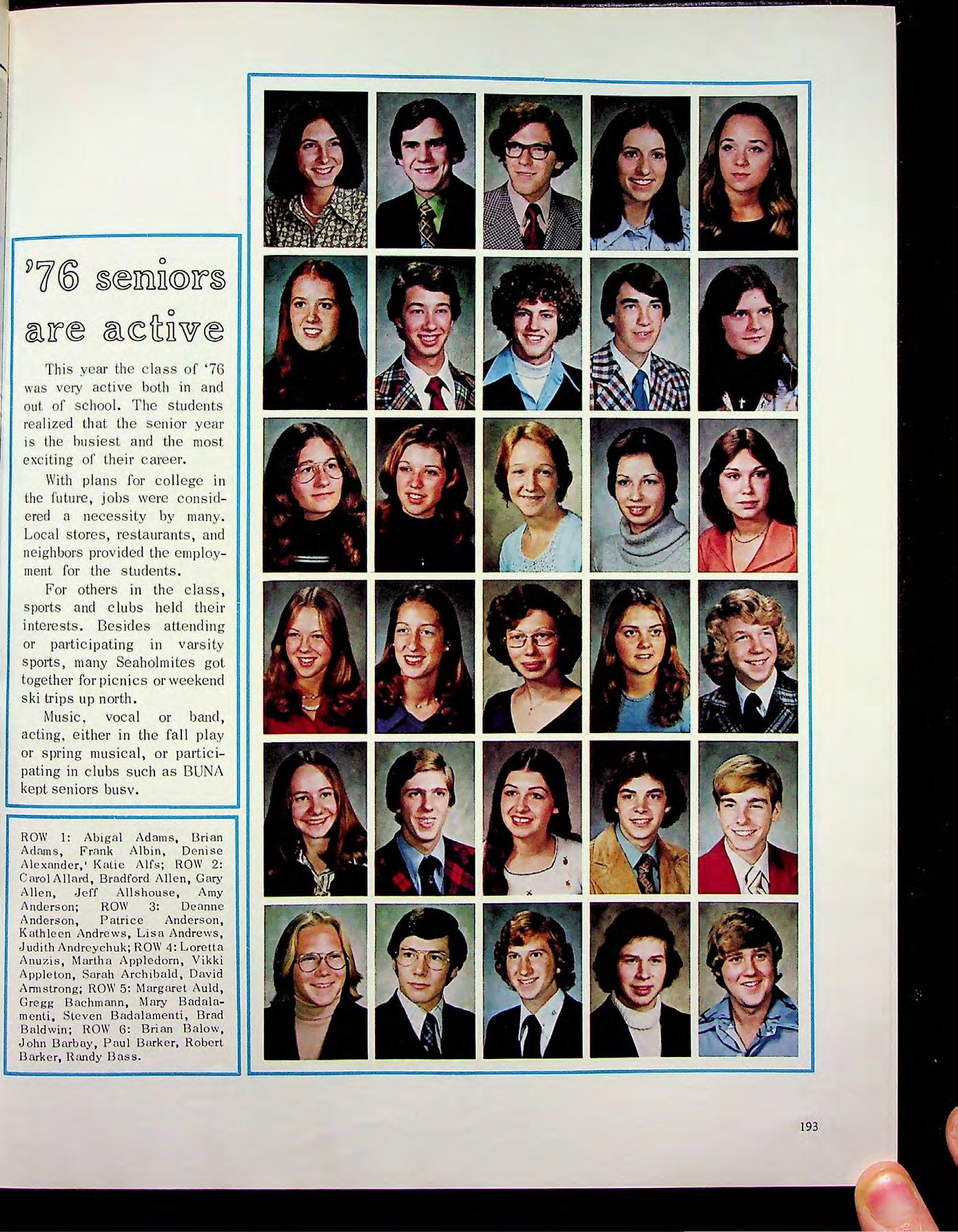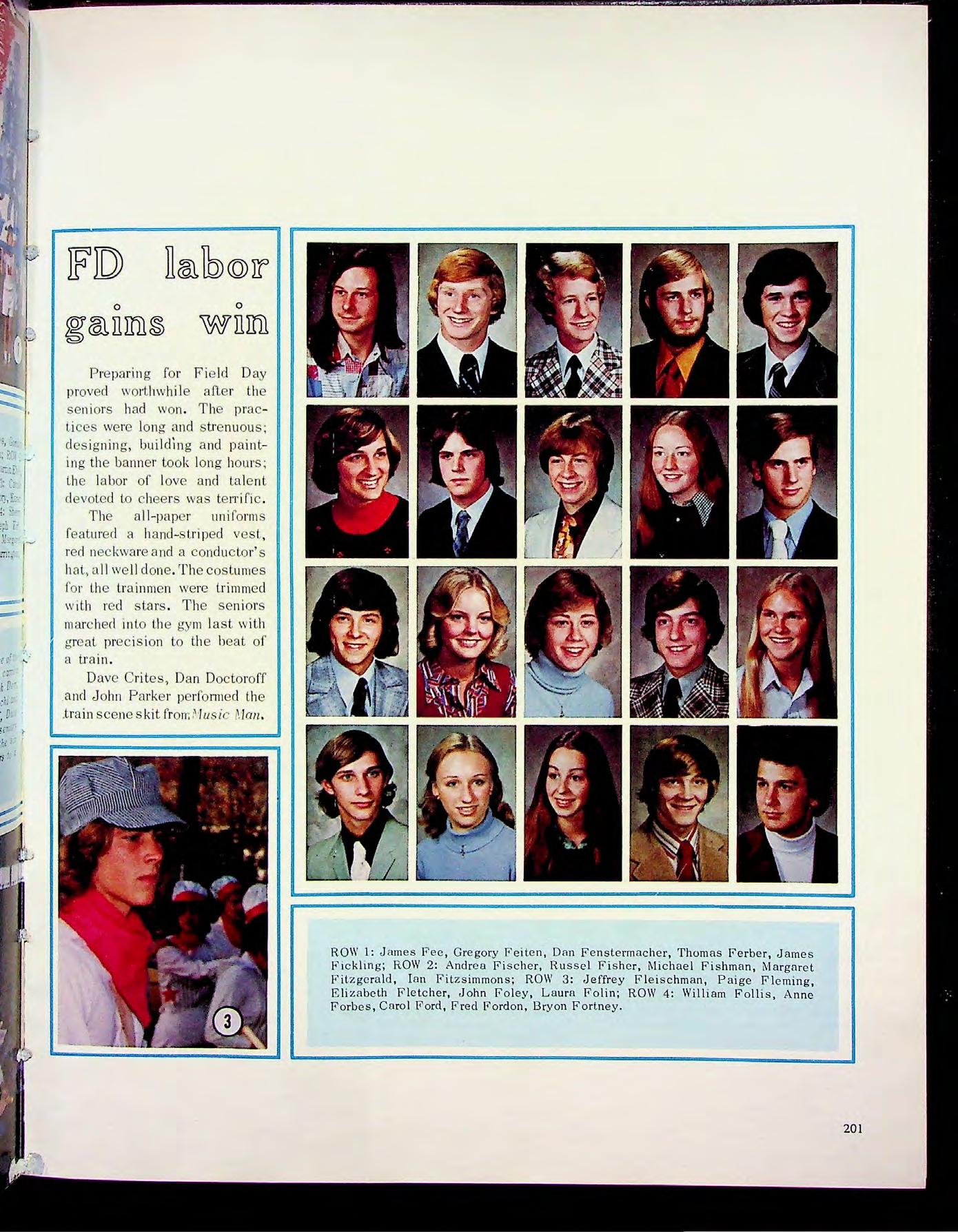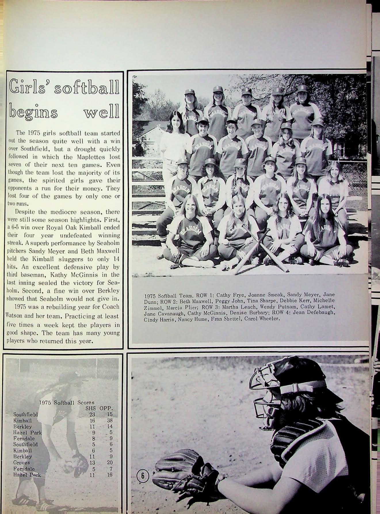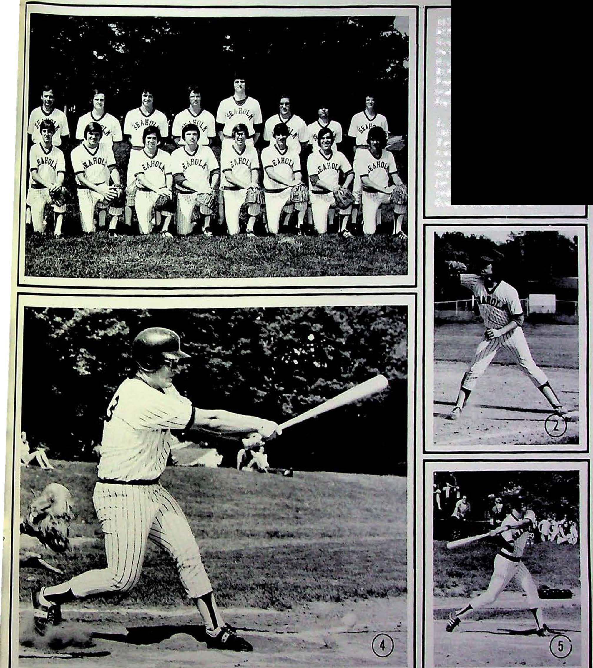 1975 Baseball Team. FRONT ROW: Bruce McElhinney, Don Bean, John Boch, Tom Foell, Steve Jeske, Joe Georger, Tom Hague, �fork Seconline; BACK ROW: Coach Sockott, Tom ForcsLor, Jim Knznnski, Doug Smilh,MikeMurphy, GregProbst, Jny Spenchian, Wes Hook.