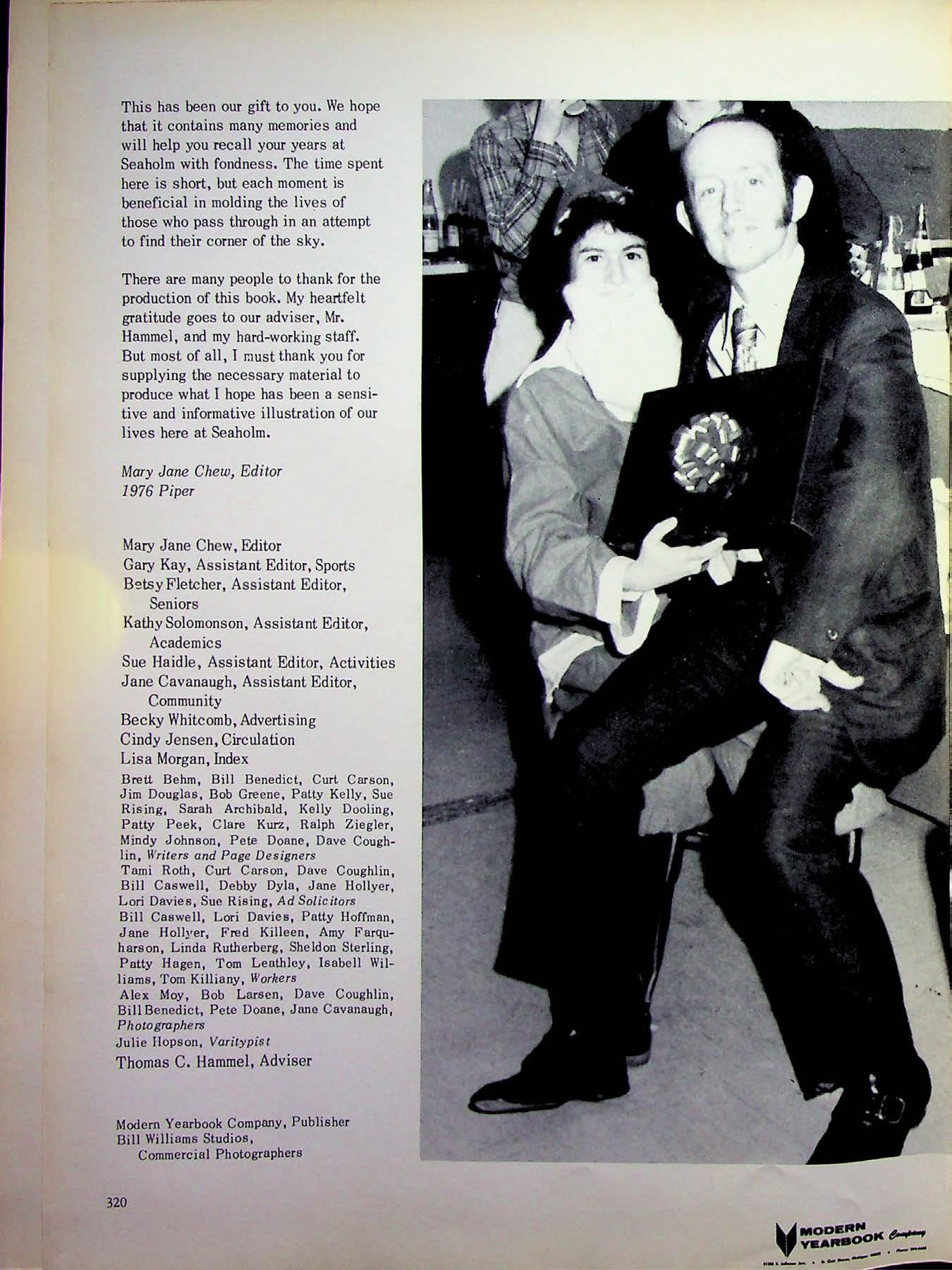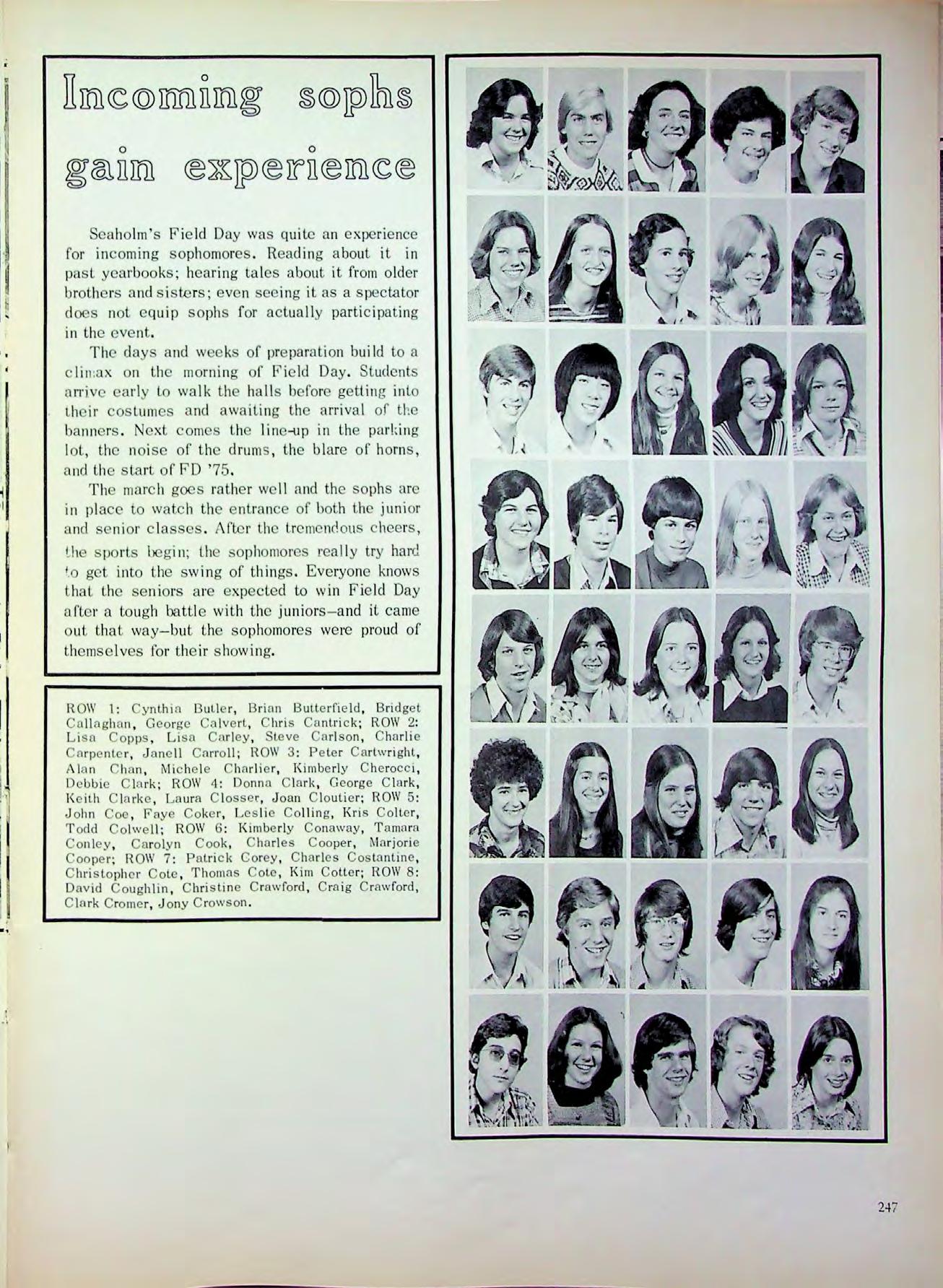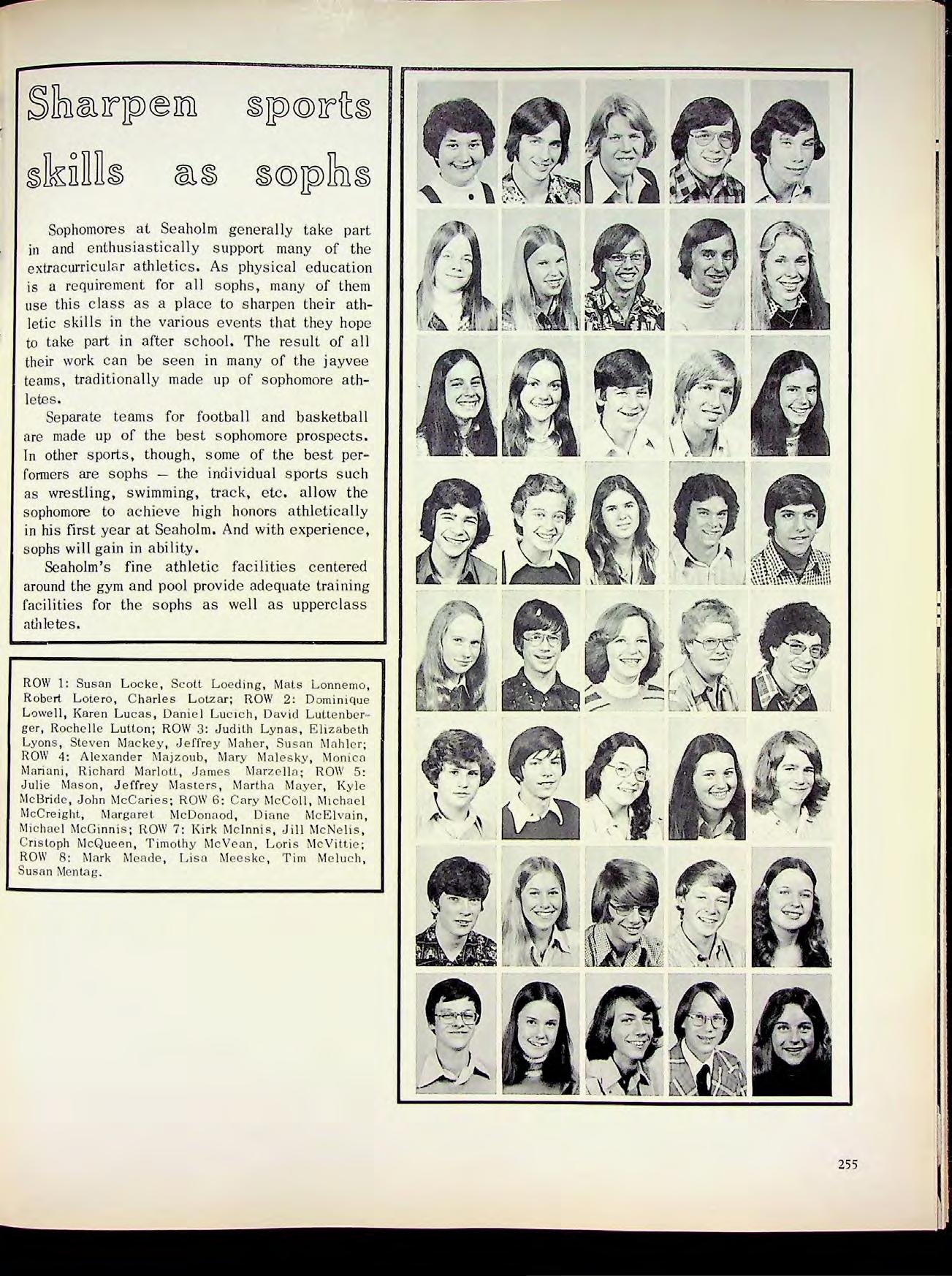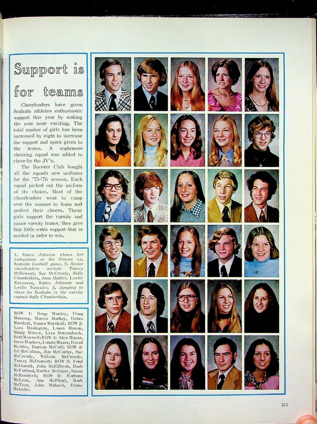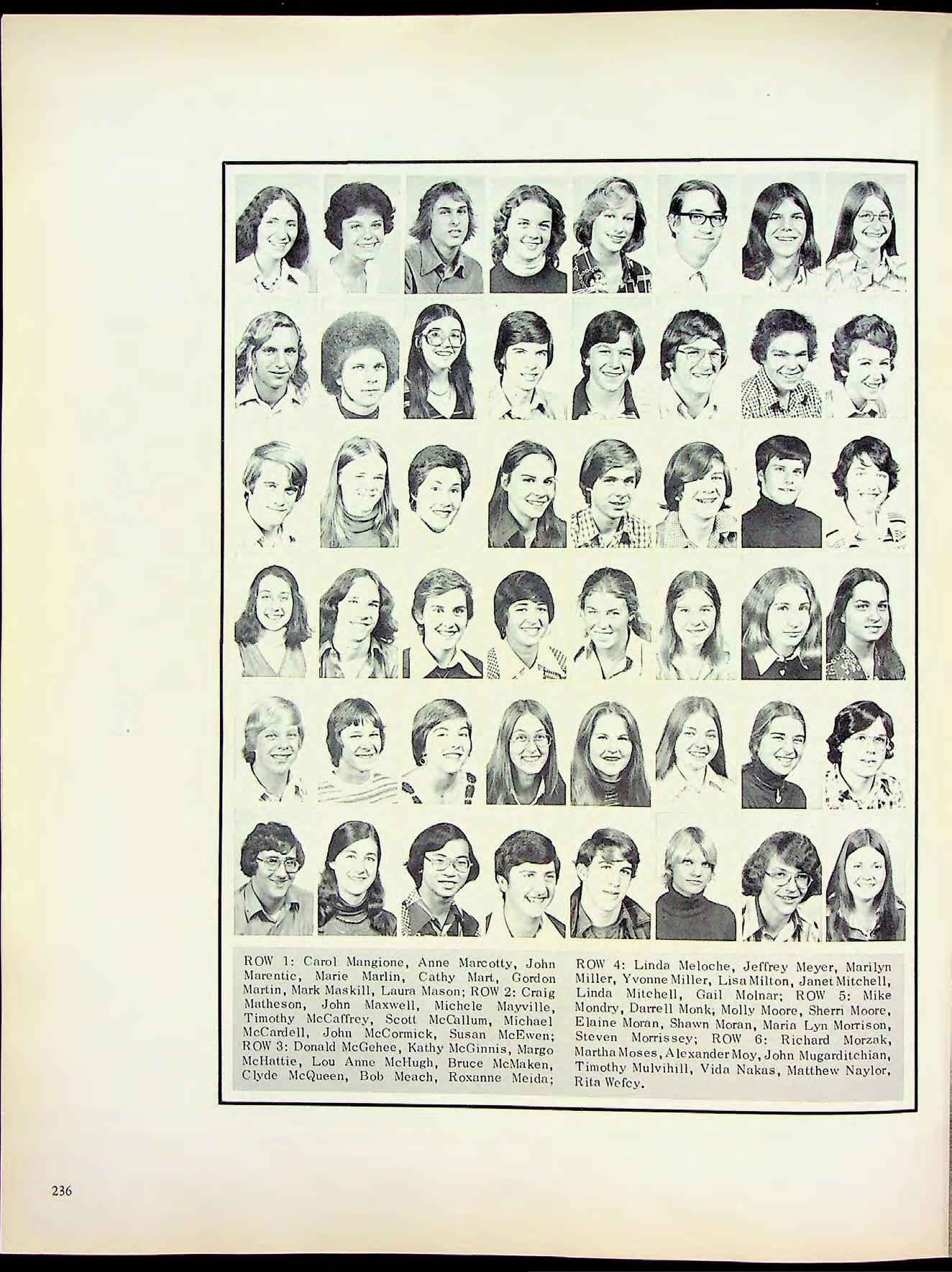 1975 Baseball Team. FRONT ROW: Bruce McElhinney, Don Bean, John Boch, Tom Foell, Steve Jeske, Joe Georger, Tom Hague, �fork Seconline; BACK ROW: Coach Sockott, Tom ForcsLor, Jim Knznnski, Doug Smilh,MikeMurphy, GregProbst, Jny Spenchian, Wes Hook.