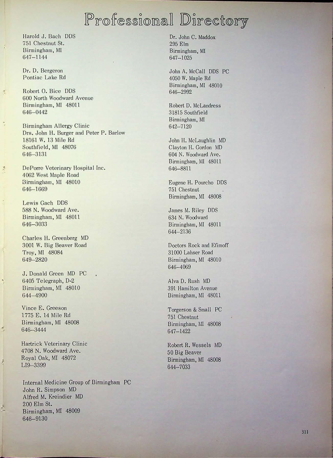 Robert R. Wessels MD 50 Big Beaver Birmingham, MI 48008 644-7033