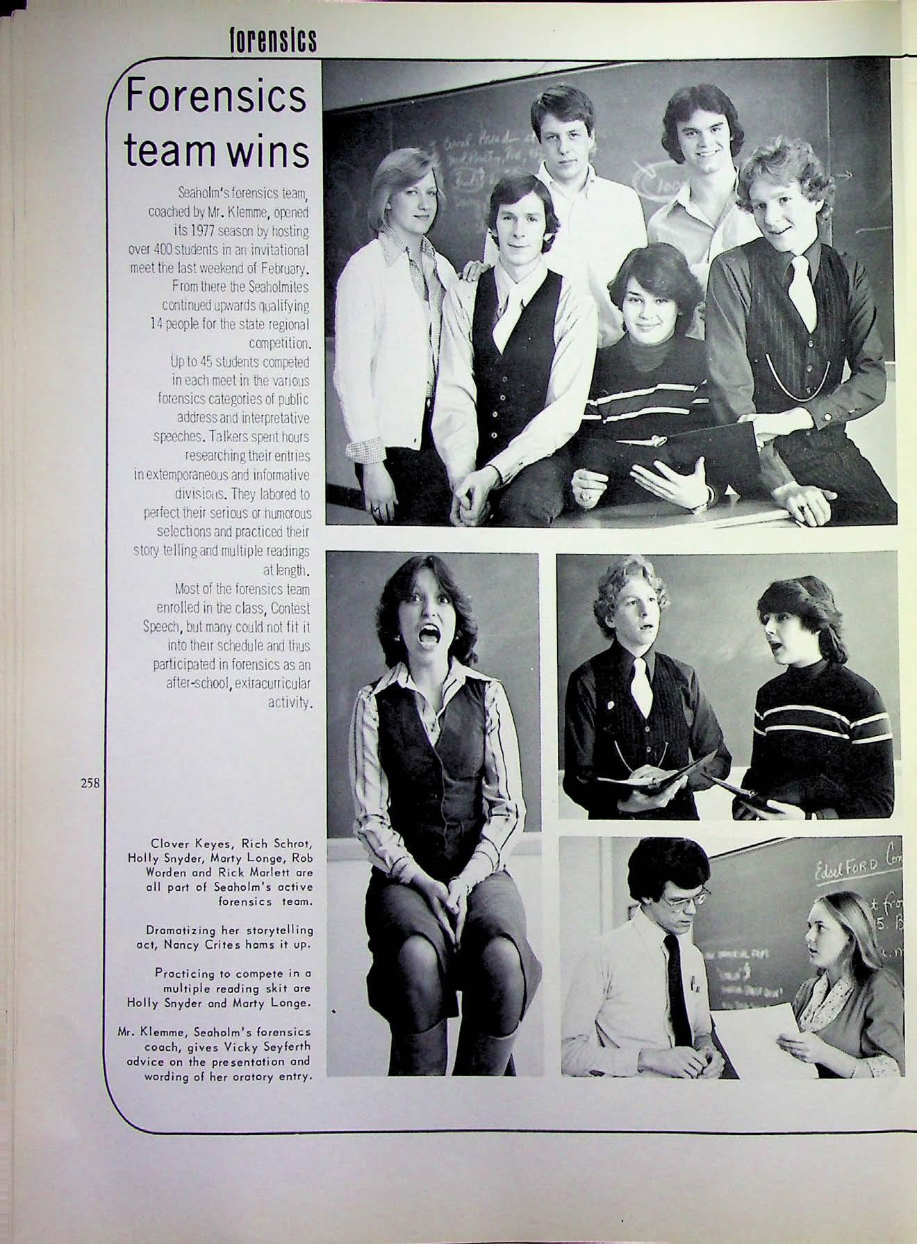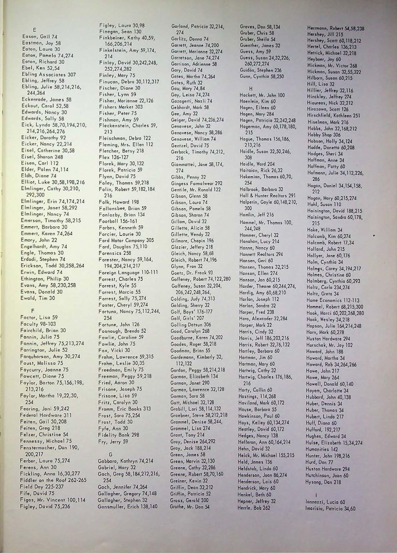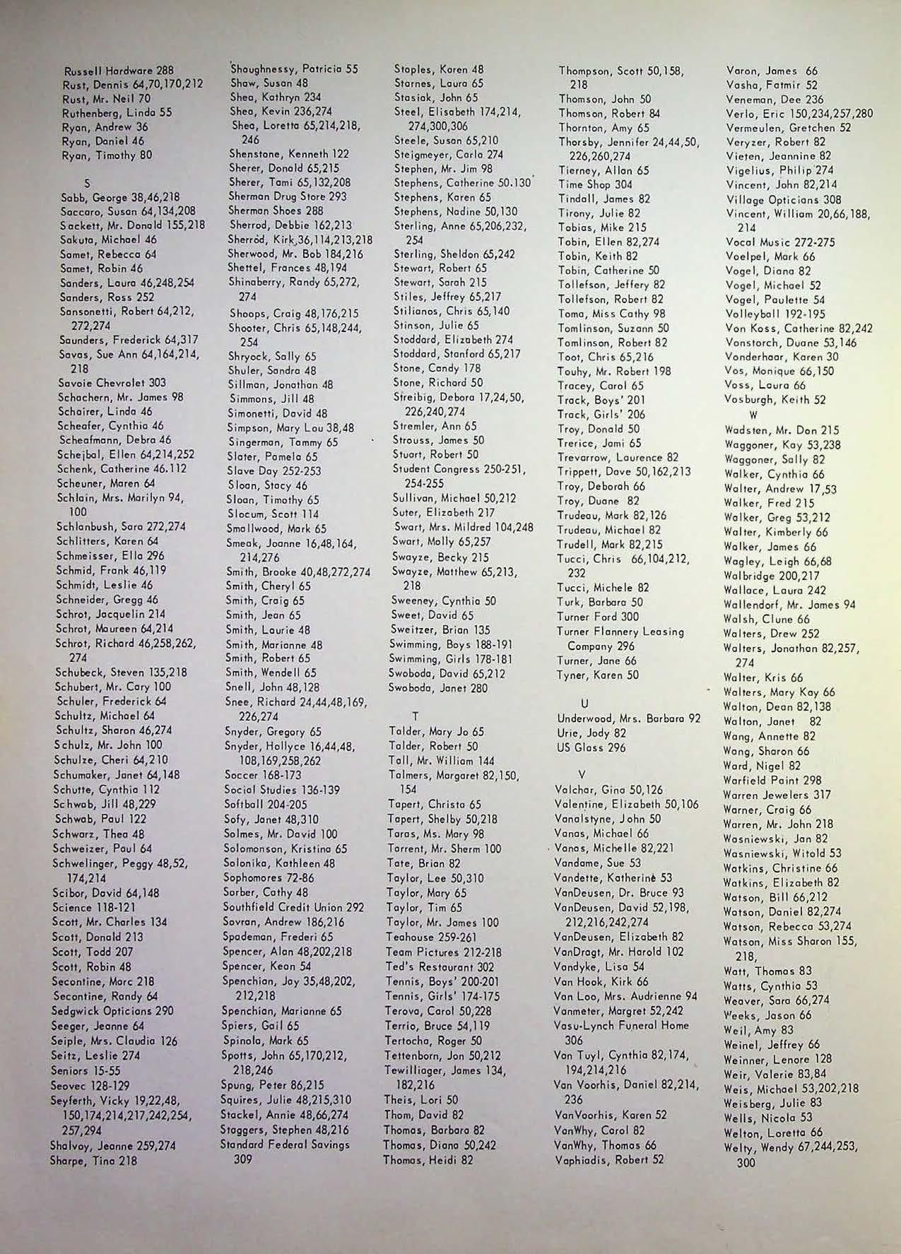 Tertocha, Roger 50 306 Weinel, Jeffrey 66 Seitz, leslie 274 spotts John 65,170,212, Tettonborn, Jon 50,212 van T uyl, Cynthia 82,174, weinner Lenore 128 Seniors 15-55 218,246