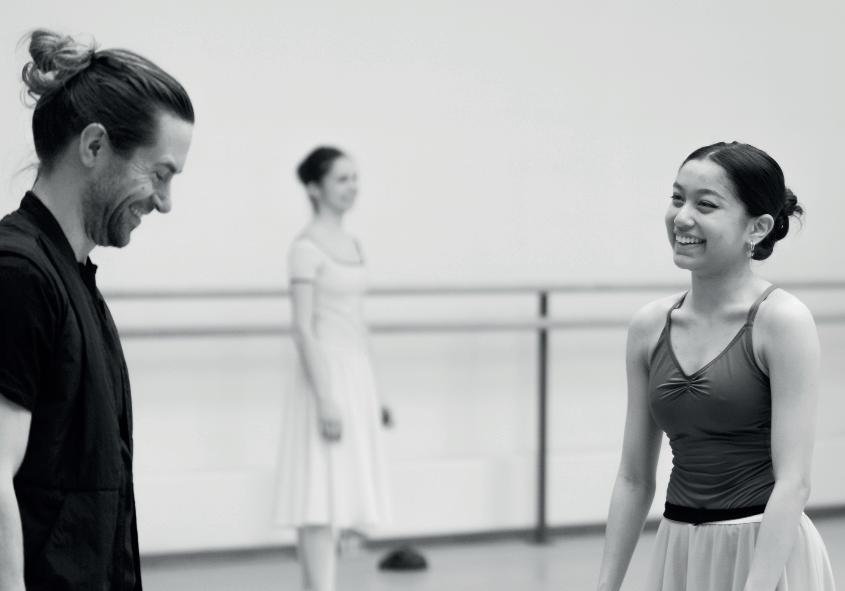6 Top: Eric Pinto Cata rehearsing La Sylphide; below: Maïlène Katoch and Mason King rehearsing Swan Lake. © Lachlan Monaghan.