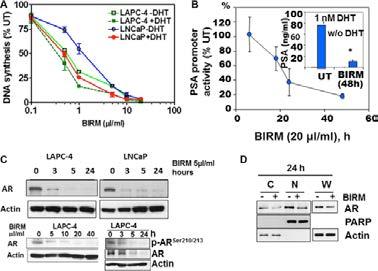 Conclusion: The plant extract BIRM contains antitumor compounds of Mr ‡3500 with potent antiproliferative activity in vitro and in vivo against prostate cancer cells.