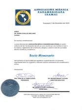 HONORARY MEMBER OF THE PAN AMERICAN MEDICAL ASSOCIATION (PAMA) FOR HIS LAUDABLE SCIENTIFIC AND ACADEMIC MERITS. GUAYAQUIL, ECUADOR. DECEMBER 5TH, 2019.