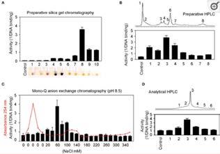 Particle-free BIRM was loaded onto a G-50 Sephadex column (1.5•120 cm) equilibrated with 20 mM Tris-HCl, pH 7.4, containing 150 mM NaCl buffer (Tris/NaCl buffer) [20]. The column was eluted in Tris/NaCl buffer at 7 ml/h and 3-ml fractions were collected. Each fraction was assayed for protein (BCA-Bio Rad), uronate [2], inhibition of cell growth (MTT assay) [19] and inhibition of HAase activity (HAase ELISA-like assay).