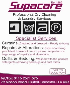 Pics: volunteer litter pickers DA Roofing & Building Tiling • Slating • Repointing Guttering • Fascias • Soffits ALL WORK GUARANTEED • NO VAT Tel: 0116 4315689 Mob: 07789 116726 Over 25 Years Experience 61 Worcester Ave, Birstall David Preston - 0775 262 3885 www.1-4-all.co.uk 1 - 4 - ALL Domestic Appliance Spares & Repairs Washers • Dryers • Dishwashers Fridges • Cookers GAS & ELECTRIC All Leading Makes Serviced 20 Years Experience All Domestic Plumbing Full Central Heating Boiler Swaps & Upgrades Fully Fitted Bathrooms Wall & Floor Tiling ALL WORK GUARANTEED Local Business • Call Rob Scott: Tel: 0116 2209311 Mob: 0796 7695631