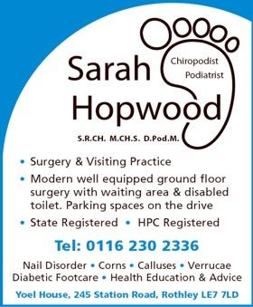 James 07802 915559 Woodcock www.woodcockfarm.co.uk FARM SHOP Home Grown Potatoes: White Marfona Red Mozart Fresh Fruit & Veg Local Honey & Preserves incl Marmalade & Chutney Horse & Pony Feeds, Goat Feeds, Poultry Feeds, Rabbit Food, Hay Straw & Shavings Manure, Woodchip Mulch we can deliver bulk loads of these items, call or visit for further details DIY Liveries FIREWOOD: bulk loads delivered OPENING TIMES Mon-Sat 9am to 5pm Sunday: closed Please note these times may change during public holidays. Ring us for details. jamesbarber@woodcockfarm.co.uk Phone 07936 899 855 Clear Ear Services £40 all inclusive price Mobile ear syringing service (we come to you!) Professional, Friendly, Experienced & Qualified Nurses, Fiona and Vanessa SHARPENING SERVICES Knives from £5 Scissors from £6 Shears etc from £8 Free collection & delivery to local area Birstall - Syston - Thurcaston Rothley - Thurmaston Email: stuwasho@yahoo.co.uk for more details Stuart: 07818 575 769 Trouble with your figures? Want someone to walk you through a self assessment? Let me help get your books in shape… & keep them trim Linda Kimberley-Brooks (ACMA) Final accounts • Self assessment Taxation • Bookkeeping • VAT Payroll • Management accounts A friendly service tailored to your needs 0116 23 66 345 Companies & individuals call now on www.twyf-accounts.co.uk Email: Linda@twyf.co.uk