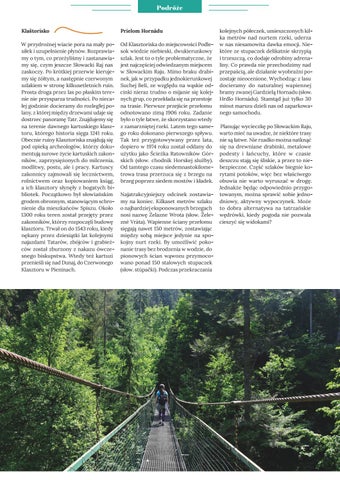 kolejnych półeczek, umieszczonych kilka metrów nad nurtem rzeki, uderza w nas niesamowita dawka emocji. Niektóre ze stupaczek delikatnie skrzypią i trzeszczą, co dodaje odrobiny adrenaliny. Co prawda nie przechodzimy nad przepaścią, ale działanie wyobraźni pozostaje nieocenione. Wychodząc z lasu docieramy do naturalnej wapiennej bramy zwanej Gardzielą Hornadu (słow. Hrdlo Hornádu). Stamtąd już tylko 30 minut marszu dzieli nas od zaparkowanego samochodu. Planując wycieczkę po Słowackim Raju, warto mieć na uwadze, że niektóre trasy nie są łatwe. Nie rzadko można natknąć się na drewniane drabinki, metalowe podesty i łańcuchy, które w czasie deszczu stają się śliskie, a przez to niebezpieczne. Część szlaków biegnie korytami potoków, więc bez właściwego obuwia nie warto wyruszać w drogę. Jednakże będąc odpowiednio przygotowanym, można sprawić sobie jednodniowy, aktywny wypoczynek. Może to dobra alternatywa na tatrzańskie wędrówki, kiedy pogoda nie pozwala cieszyć się widokami?