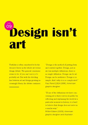 Design isn’t art Usability is often considered to be the decisive factor in the whole art versus design debate. The general consensus seems to be: if you can’t use it, it’s probably art. But with the dividing line between art and design growing increasingly blurry, the debate continues.