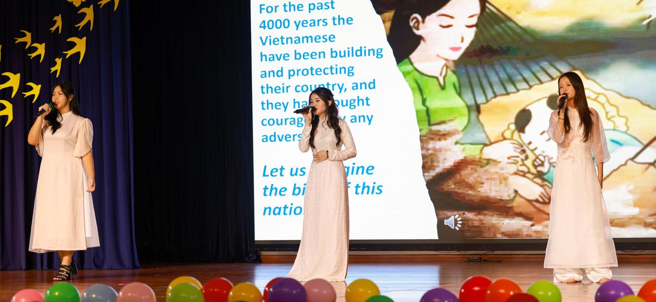 The assembly then took a historical turn as our Secondary students showcased "Việt Sử Kiêu Hùng," depicting the glorious history of Vietnam and the resilience of its people in the face of adversity. Their portrayal of Vietnamese victories and the pursuit of peace resonated deeply with the audience.