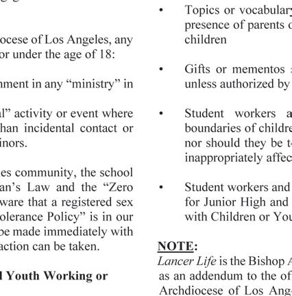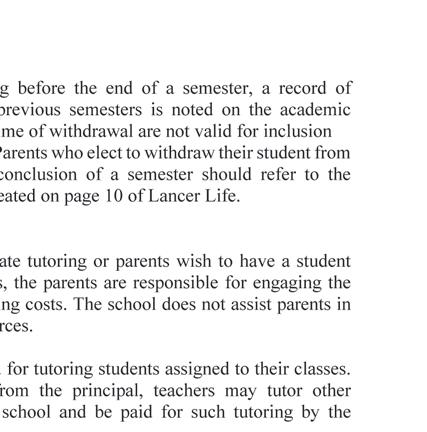 4. Adherence to the standards of the school as set forth in Lancer Life, including the requirements of dress and grooming codes.