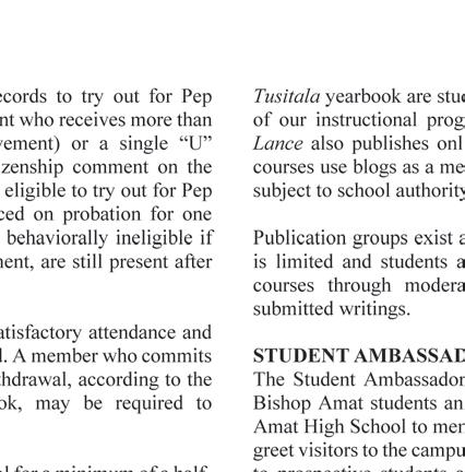 2. Candidates for ASB Office must be members of the Associated Student Body of Bishop Amat for at least three full semesters prior to nomination for that office.