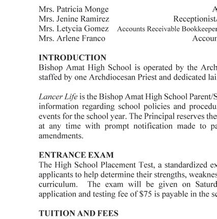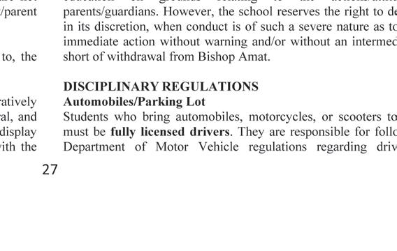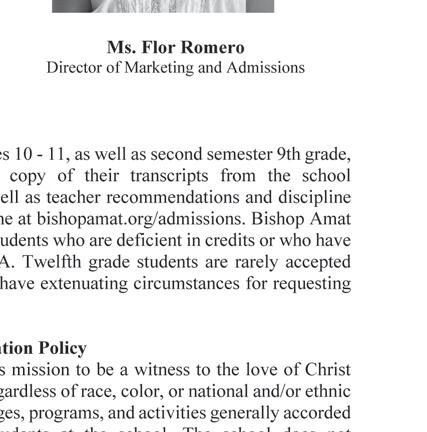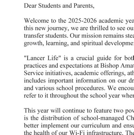 Parents have the primary responsibility for the education of their children. The school, Church, and community support and complement this role. It is important to realize that the school has a stated philosophy and specific expectations for families and their students enrolled at Bishop Amat High School. Parents’ attitudes are expected to contribute to the education process. Parents who do not agree with the school’s