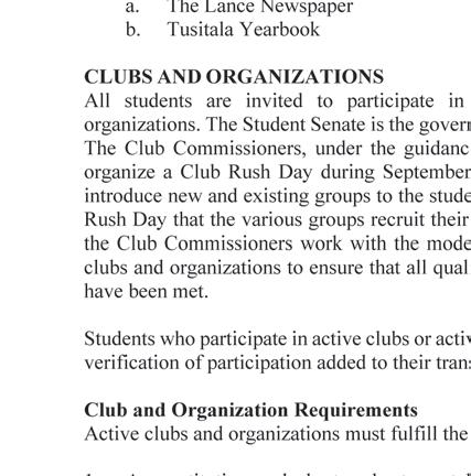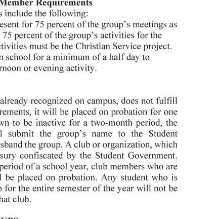 Section 1: Any group of students may petition the Student Government, both houses, for a charter granting them the right to have a club on campus.