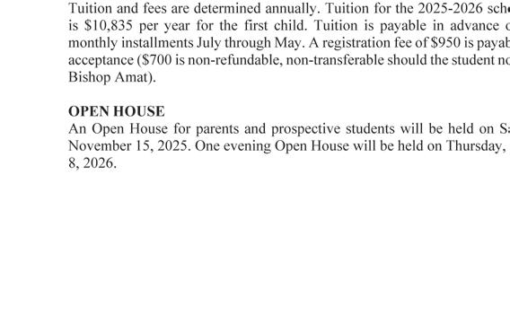 As with most Archdiocesan schools, the tuition charged does not cover the cost to educate a student. For the 2025-2026 school year, the Bishop Amat tuition is $10,835 per student. The actual cost to educate a student is $13,645 which leaves a “gap” of $2,810. The school must engage in fund-raising activities to cover this shortfall.