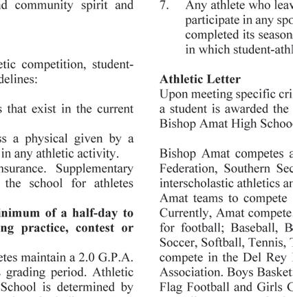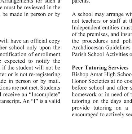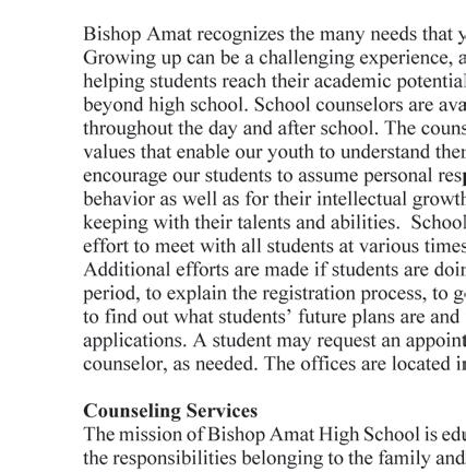 The following information explains the policies regarding graduation from Bishop Amat High School: