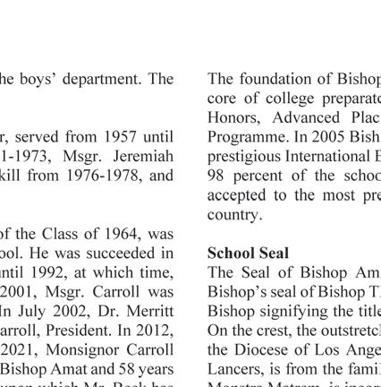 PHILOSOPHY AND HISTORY OF BISHOP AMAT HIGH SCHOOL