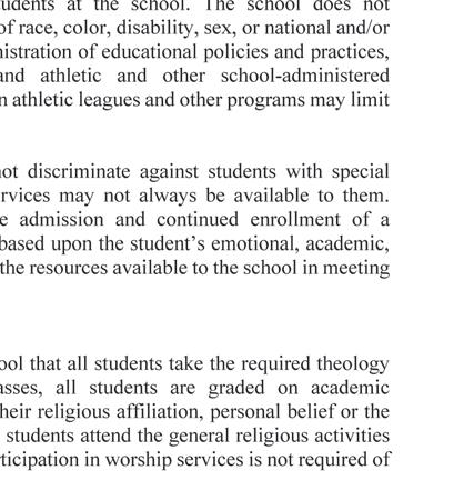 2. Students with delinquent accounts will not be allowed to take Part B of semester exams. Students who earn a grade of “Incomplete” on a semester report card for financial reasons will not be allowed to return to the school for the following academic year until the tuition account is cleared and make-up exams have been taken. Note: Incomplete grades affect a student’s G.P.A. and eligibility to participate in extracurricular activities.