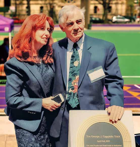 George and his wife, Susan, at the dedication of the George J. Cappiello Track in 2017.