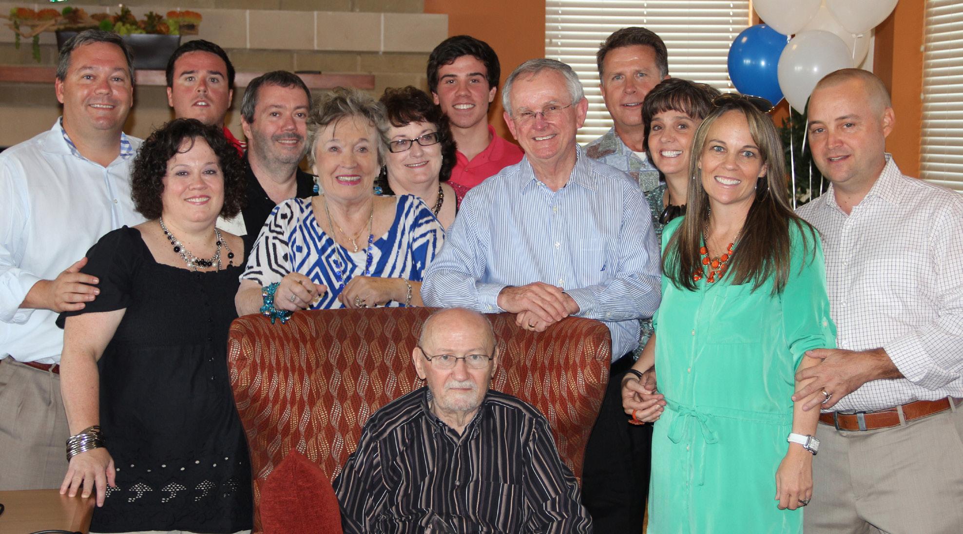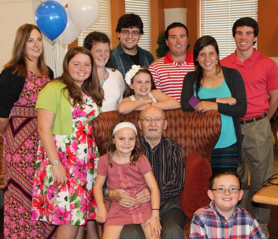 Bob celebrates his 80th birthday surrounded by his grandchildren. Not pictured: Chris Paradowski.