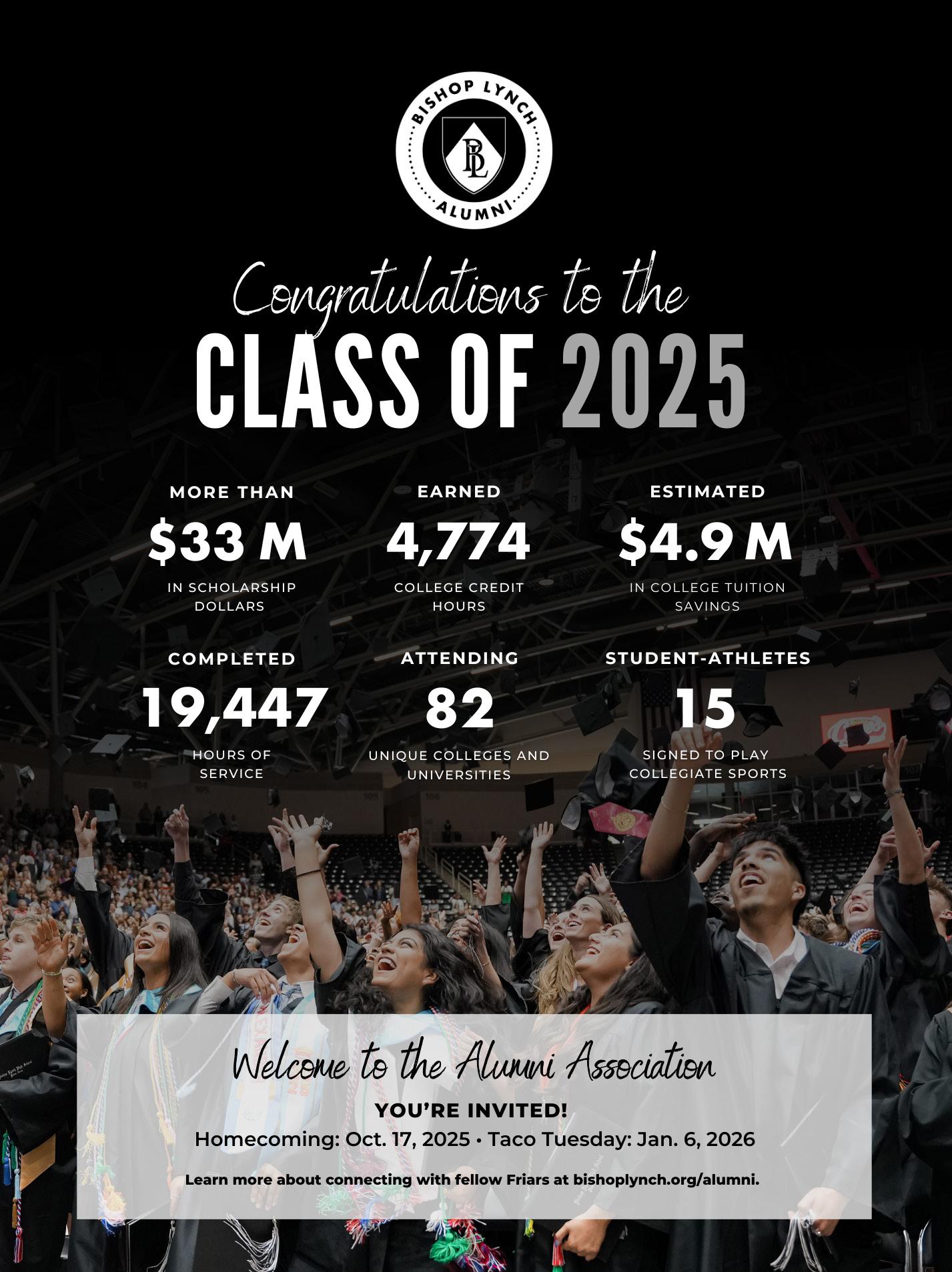 To those who have walked the halls of Bishop Lynch before, and to those just finding their place within them— thank you. Thank you for the prayers you’ve offered, the trust you’ve placed, and the pride you’ve carried as part of the Friar family.