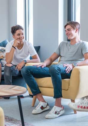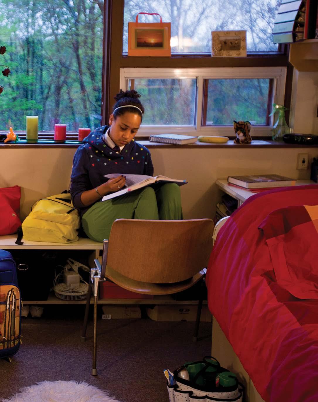 T he houses provide every T hing students need for studying, living, and socializing at BCS. Each room is shared by two students and includes workspace and storage.