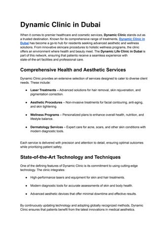 When considering advanced skincare options, one common question is whether Profhilo treatment is suitable for all skin types. This innovative procedure has gained popularity across Dubai for its unique approach to skin hydration and rejuvenation. At Dynamic Life Clinic in Dubai, clients are increasingly exploring Profhilo Treatment in Dubai to improve skin elasticity, restore natural glow, and enhance overall facial aesthetics.
