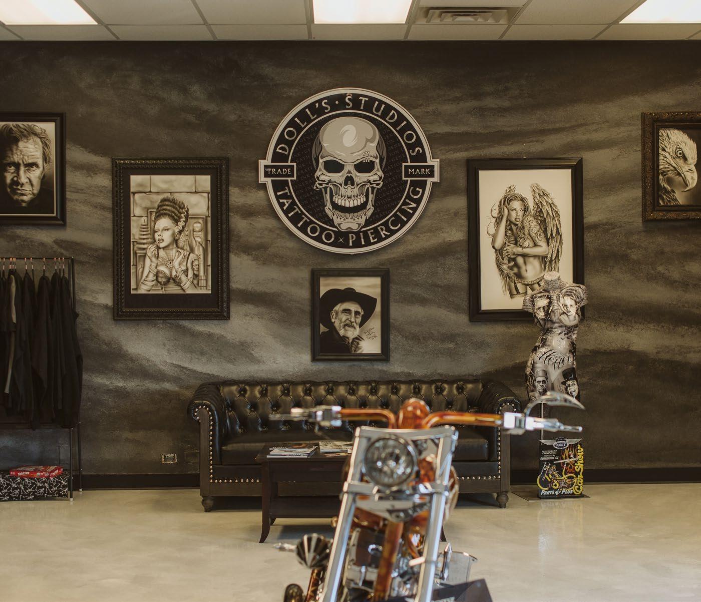 The atmosphere at Doll’s Studios is professional while still feeling friendly and comfortable. “We try to create a very comfortable environment with the highest standards of integrity,” Jason describes. Jason’s passion for his work is fueled by the artistic creativity he gets to express. “The thing I love best about owning a tattoo parlor is spending my life in the world of art and creativity while meeting all different people… Everyone has a specific reason to get a tattoo, and I’m honored to be entrusted with that responsibility,” he says. Whether you have a specific design you want or you are looking for something fun their artists have designed, Doll’s Studios is prepared to offer you exceptional service and an incredible piece of art.
