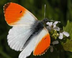 Løgkarse til venstre og til højre en Aurora sommerfugl siddende på en Løgkarseplante (tak til Bo Mossberg: Den nye Nordiske Flora 1992, og til Wikipedia)