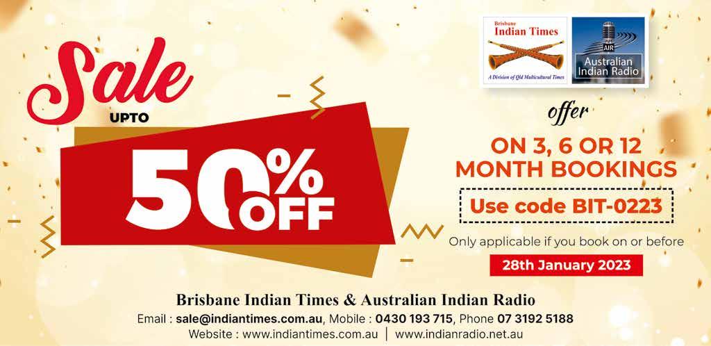 THE BRISBANE INDIAN TIMES, January, 2023 — 47 www.indiantimes.com.au Call: (07) 3192 5188