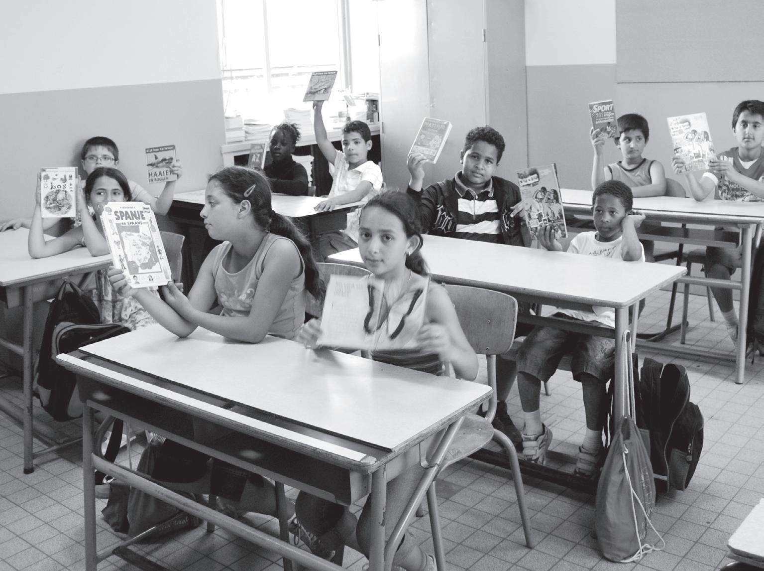 De kinderen van de multiculturele school Het Plantijntje tonen dat ze van boeken houden Deze kinderen van Het Plantijntje gaan om de zes weken naar de wijkbibliotheek. wat als die sluit? • Foto's André DEJONGHE