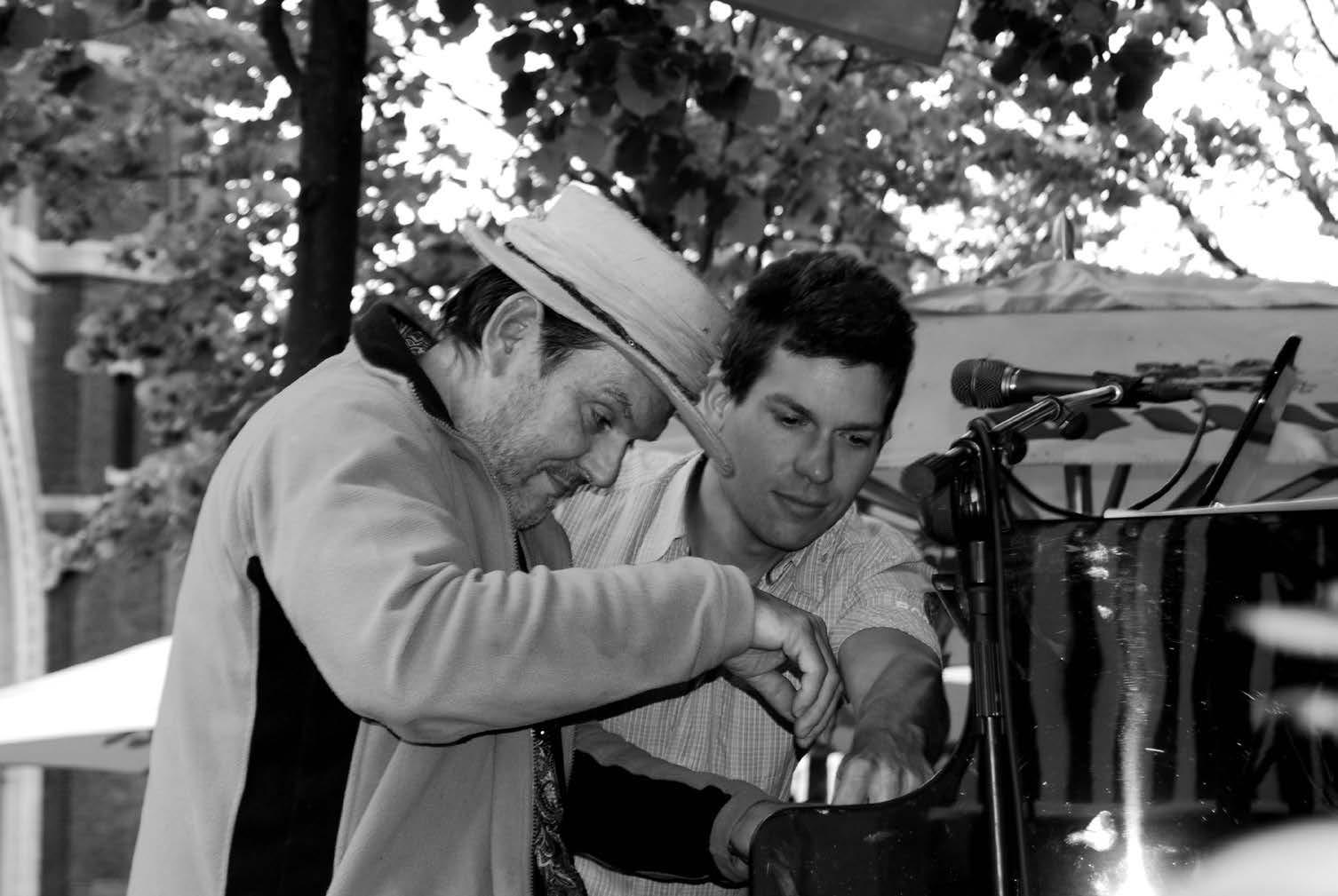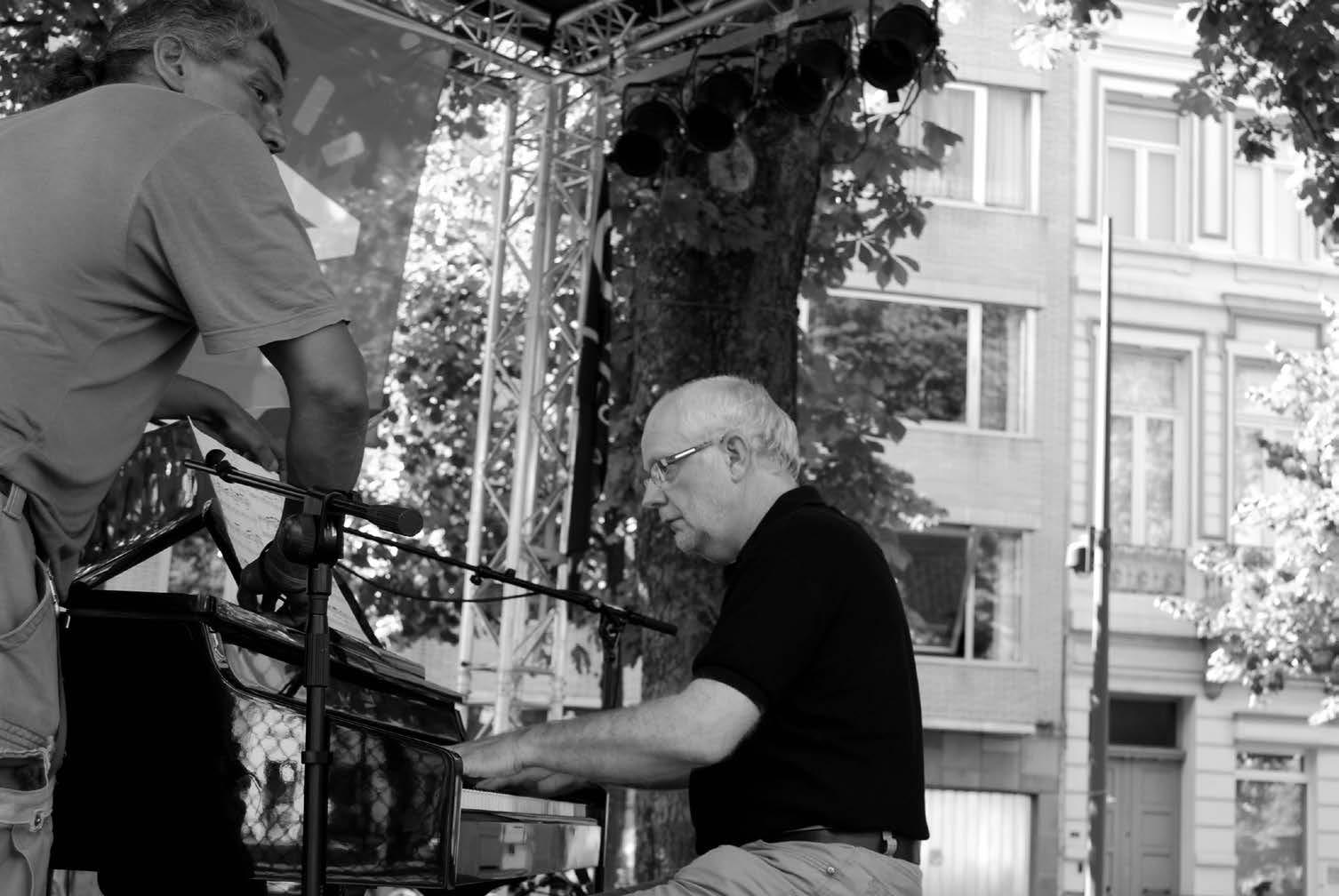duiven even stil van. En dat ging zo maar door. In augustus sloeg het Belgische weer dan weer toe maar in geen tijd waren de regenschermen daar. Kortom, een fantastisch initiatief en het moet gezegd, puik en degelijk uitgewerkt. En nu de vraag van tien miljoen : heeft er iemand last gehad van deze Klassiek op het Plein? Ze mogen het me komen vertellen maar het zou me ontzettend verbazen. Wel kwamen mensen bijeen, ze voelden zich als kleine groep goed rond het podium dat telkens op een andere plaats stond. Precies om de sponsorende horeca ook een forum te gunnen. Meteen was iedereen tevreden met dit gratis festivalletje. En hoe moet het nu verder ? Een suggestie dan maar : breng een andere rode draad aan ( thema zou een beperkt aantal muziekinstrumenten kunnen zijn), hou het korter want twee maanden lang elke zondag is misschien wel een beetje te veel van het goede. En ga verder op de nu ingeslagen weg: hou het ludiek. Zoals nu met de breiende dames (zie foto) die tijdens de concerten een jasje, slaapmuts of winterdekentje voor de piano aan het breien waren. Laat de ludieke geesten en de jongeren de vrije loop. En misschien is het toch geen slecht idee om nog eens diep na te denken over een formule waarbij verschillende genres samen iets naar boven en naar voren brengen. Zeg nu zelf, wat heeft meer symboolwaarde dan een paar goeie joodse muzikanten die muziek maken samen met enkele van de hier in de buurt wonende Arabische mensen. Het zou de symboolwaarde ver overstijgen en de Dageraadplaats de plaats geven waar het eigenlijk recht op heeft: een ontmoetingsplaats voor iedereen. Met af en toe een beetje lawaai, af en toe zonder . De zomer van 2011 wordt mooi. Zeker weten.