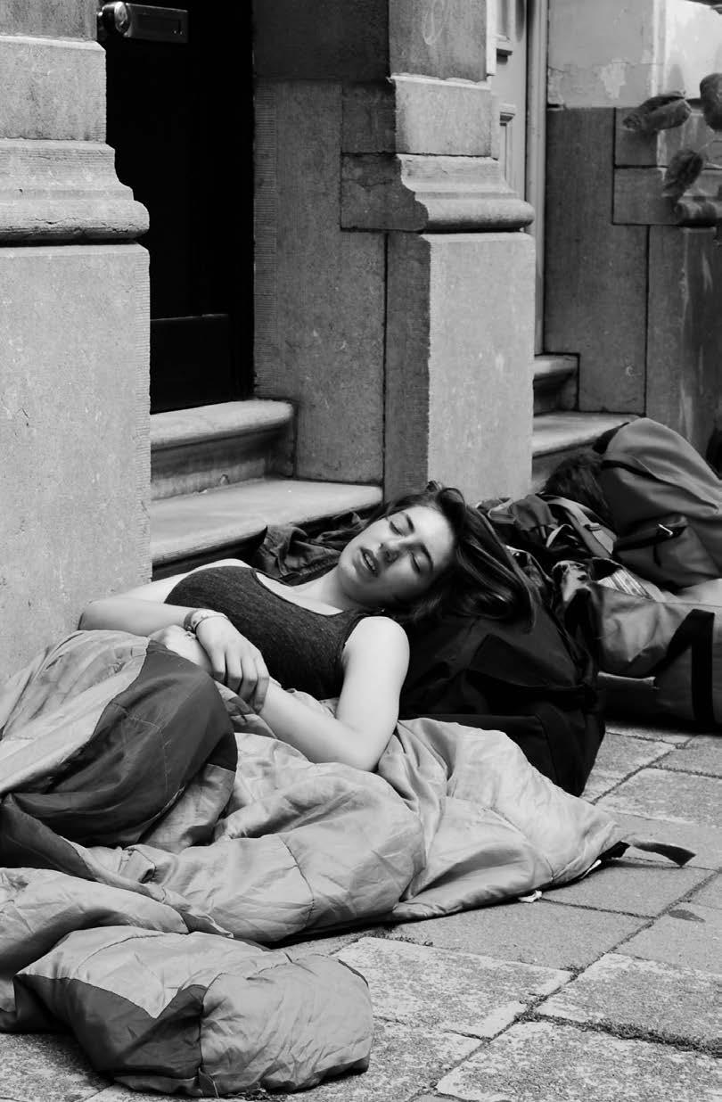 In de Grote Hondstraat trof Jeannine Fuhring twee jongedames aan die net van kamp of reis terug waren en doodvermoeid in slaap gesukkeld zijn. Op de stoep