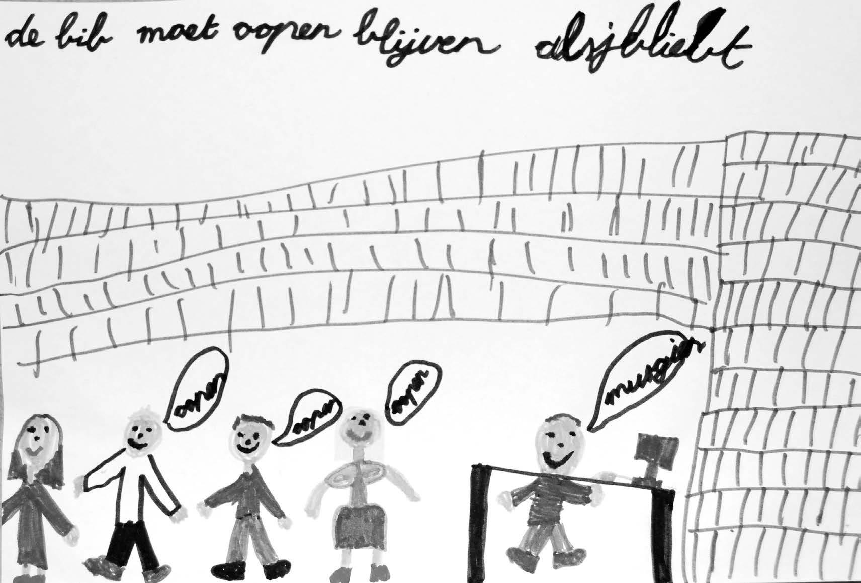 Deze CREA-kindertekening is een protest tegen de mogelijke sluiting van de bib (Foto André DEJONGHE)