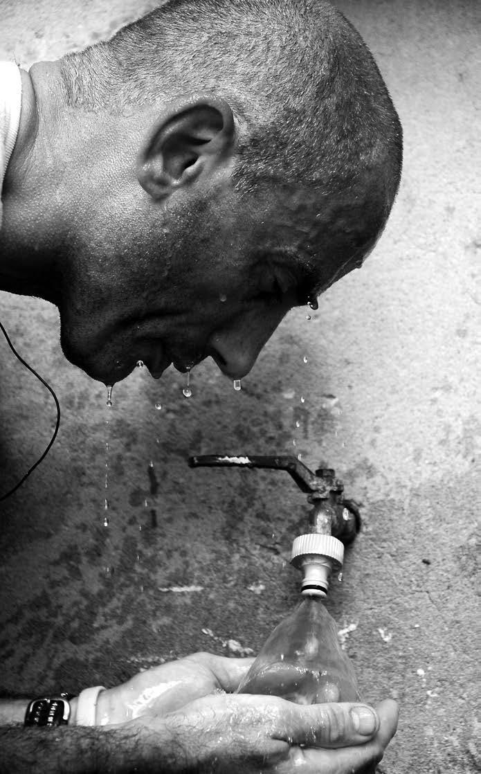 Fotograaf Dieter Dedecker volgde Serge Van Autreve tijdens zijn looptraining en maakte dit mooie momentbeeld van een dorstige loper.