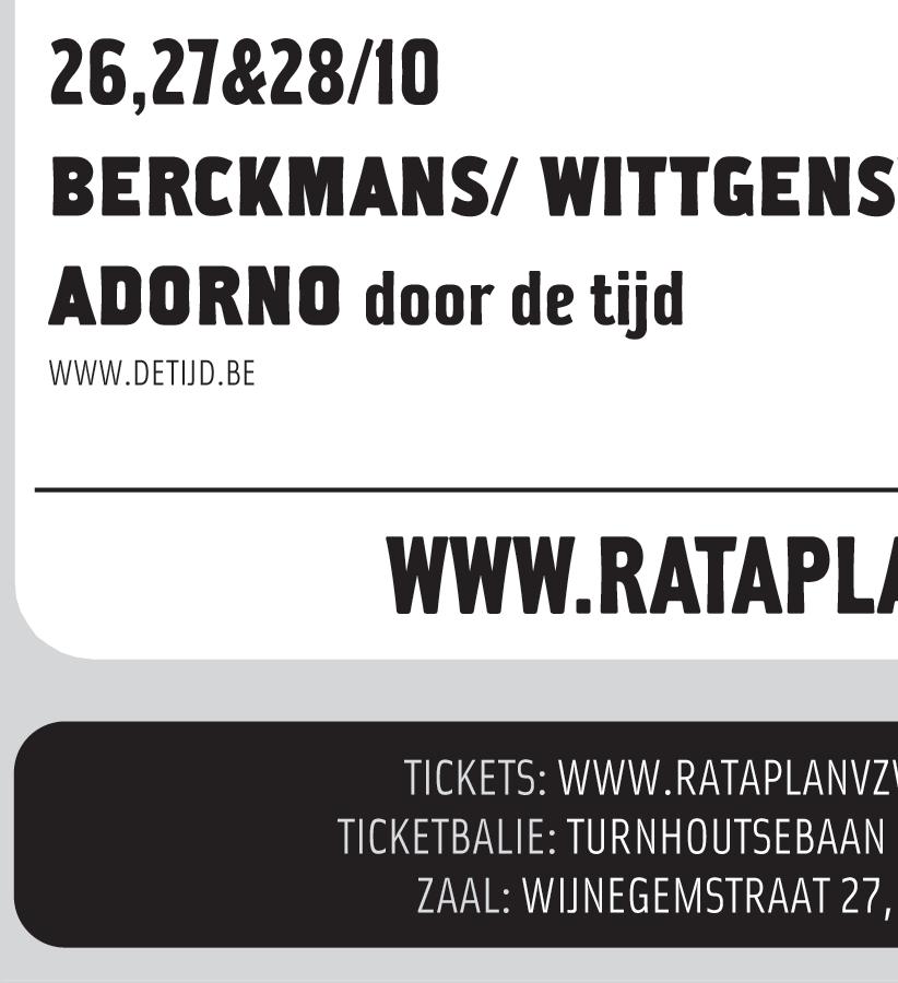 er dan een filmluik dat zich hoofdzakelijk op Congo zal richten. Verder nog debatten, boekbesprekingen, toneel, ballet. Allemaal te vinden in het Atlasgebouw. Wie meer wil weten over de vzw La Piscine d’ Activité kan terecht in de Lange Brilstraat 4 (0484-95 22 87) of op ww.amandla.be, da’s het intercultureel kunstenforum.