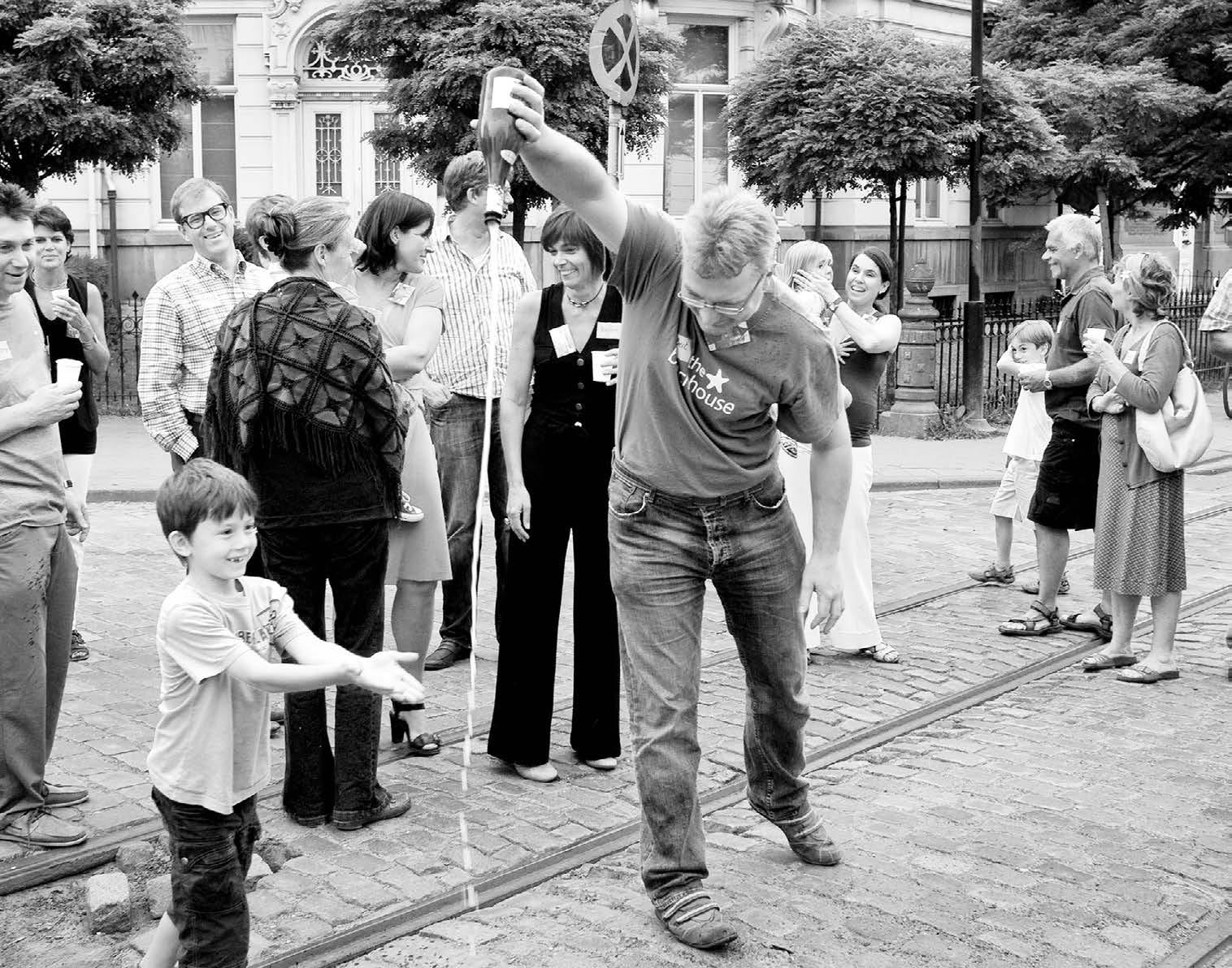 Enkele weken later ontmoet ik Mik weer op het terras van den Draak om te praten over de laatse avond van ’t Hofke want na al die jaren is het definitief gedaan. Zestien jaar geleden gingen Mik en wijlen haar man Luc de Boeck, muzikant en poppenspeler voor volwassenen, bij ‘De doffe Ellende’, op zoek naar een schoon pand in het Antwerpse om een café open te doen. Een bevriende biersteker sprak hen over café ‘den Bierboom’ aan de Dageraadplaats. Ze gingen kijken en verloren gelijk hun hart. Gegevens werden uitgewisseld op bierkaartjes, en toen Luc enkele weken later naar de secretaresse van de biersteker belde, verstond zij: Luc van’t Hof van Ellende, in plaats van De doffe Ellende, en zodoende was de naam van hun café geboren uit een geestig misverstand. Luc stond er op deze naam te behouden, hoewel Mik in eerste instantie schrik had dat deze naam klanten zou afschrikken.