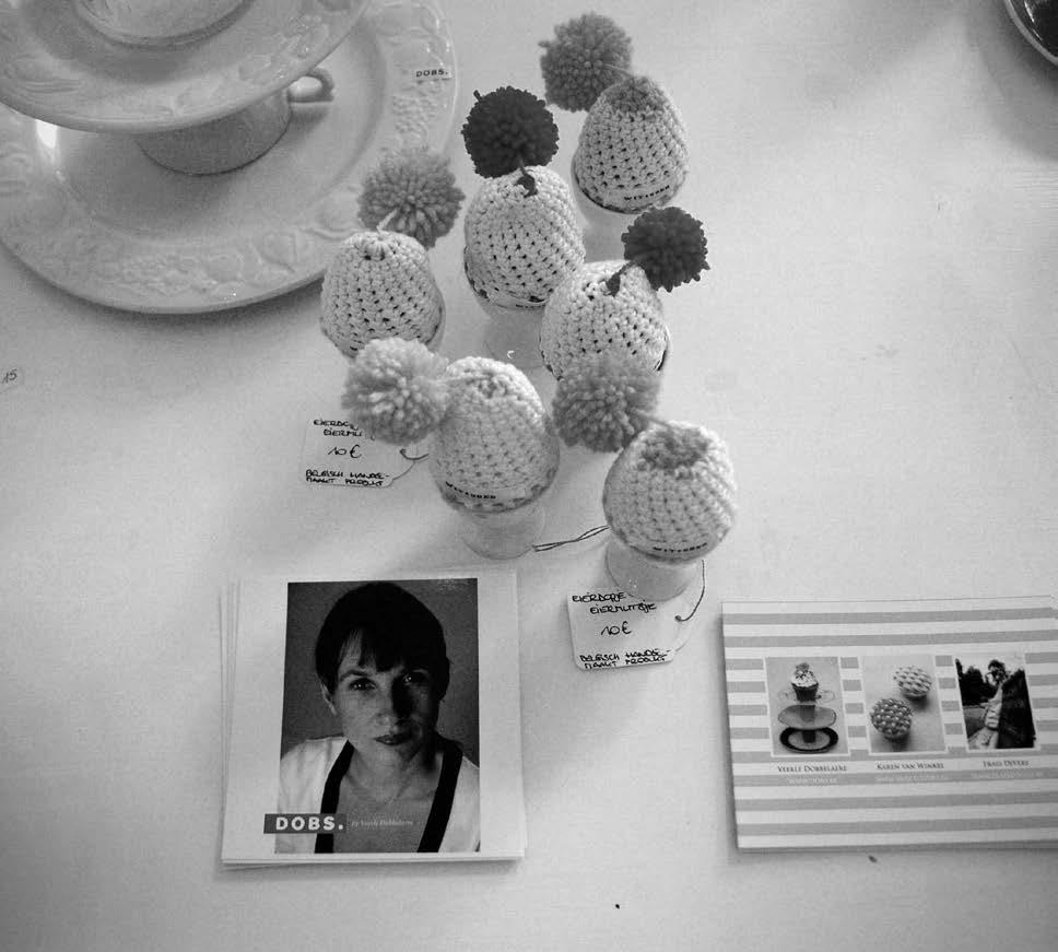 Veerle Dobbelaere, bekend als actrice in tal van televisieproducties, is al een viertal jaar bezig met het ontwerpen van allerlei snuisterijen voor binnen- en buitenhuis onder haar eigen naamlabel DOBS. Ze laat haar andere creatieve kant zien als ontwerpster in creaties zoals reusachtige zitkussens, originele wenskaartjes en zeemzoete koekie-traps (haar eigen visie op de klassieke etagères). Ze heeft geen eigen winkel, dus trekt Veerle Dobbelaere vaak rond met haar collectie en volgt daarmee de nieuwe trend van de pop-up shops. Via Rosalie, één van de uitbaatsters van Frais Divers, belandde ze op Zurenborg. De huiselijke sfeer die de zaak uitstraalt vormt het perfecte kader voor de verkoop. (Valerie MOLLY)