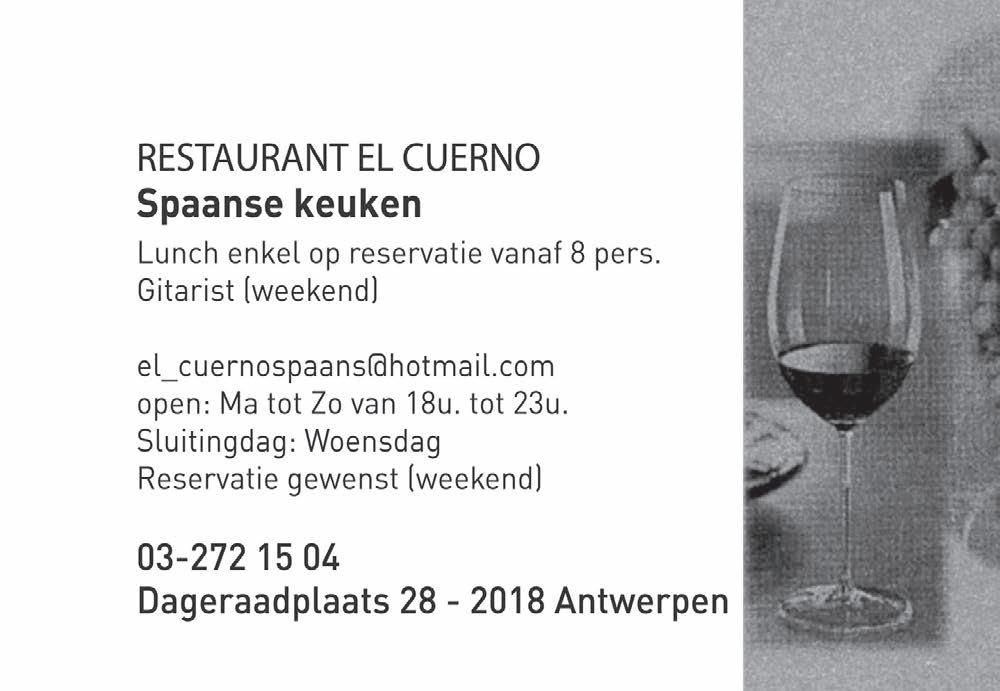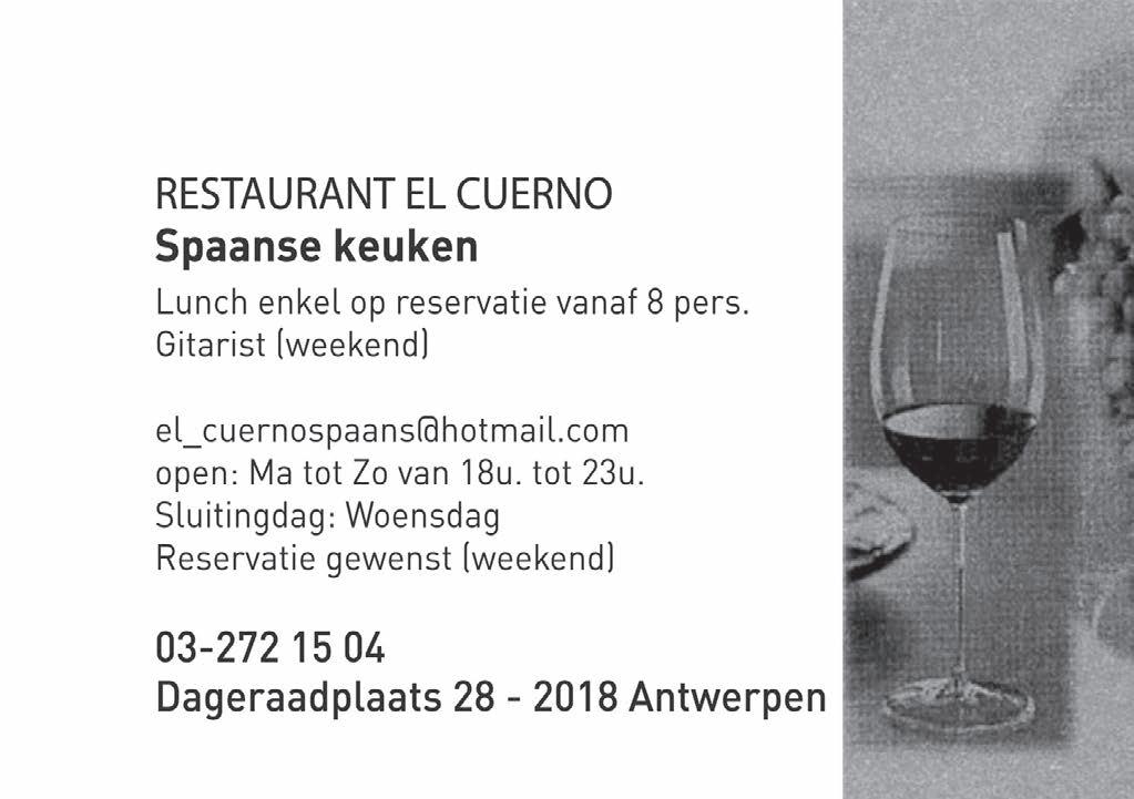 Dageraadplaats 21 - 2018 Antwerpen Tel. 03 236 74 52 - GSM 0495 40 43 79 Open van 12u tot 14u en 18u tot 23u Dinsdag gesloten