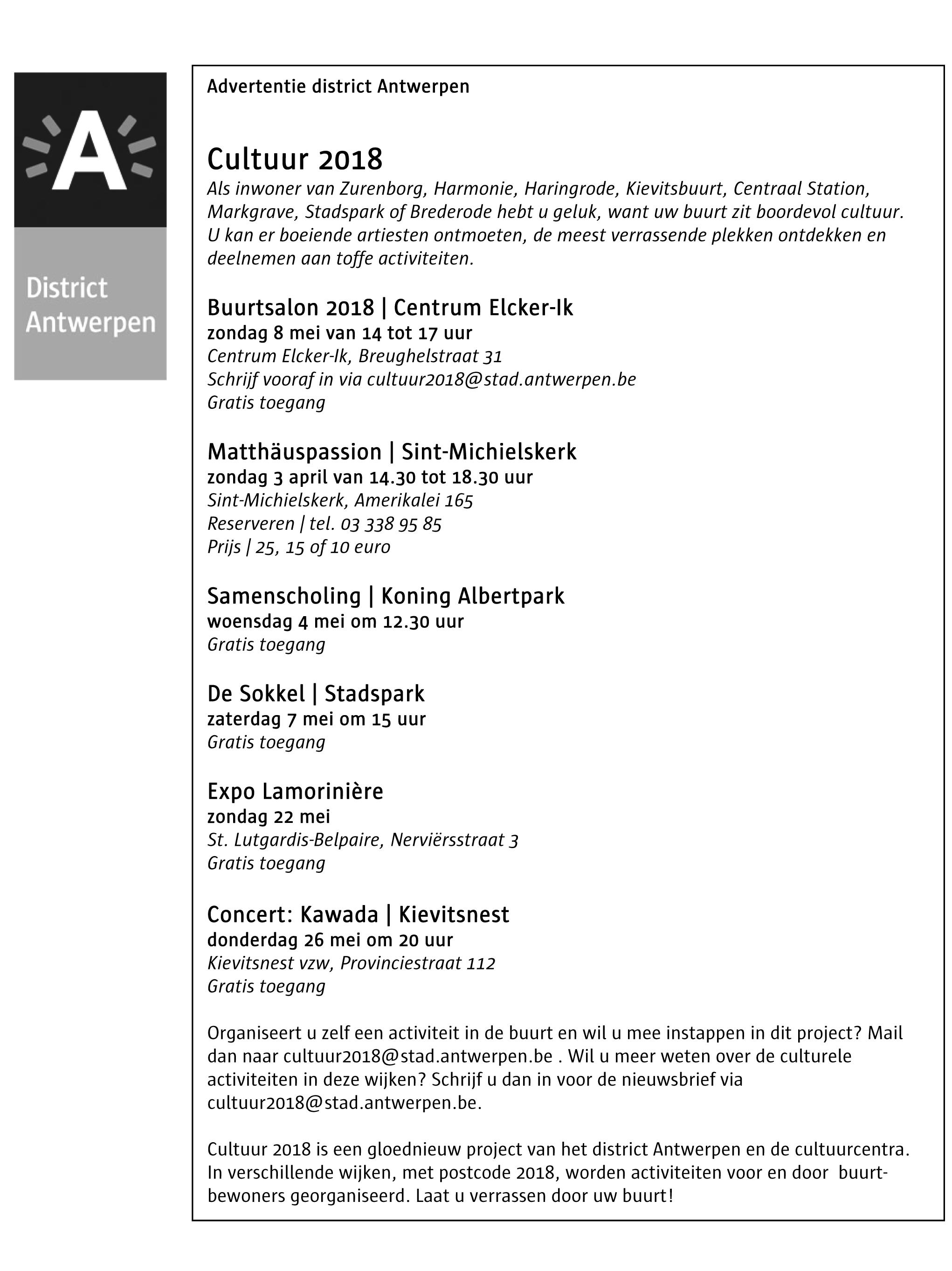 Gazet van Zurenborg – Stierstraat 3 – 2018 Antwerpen – gazetvanzurenborg@telenet.be – www.gazetvanzurenborg.be