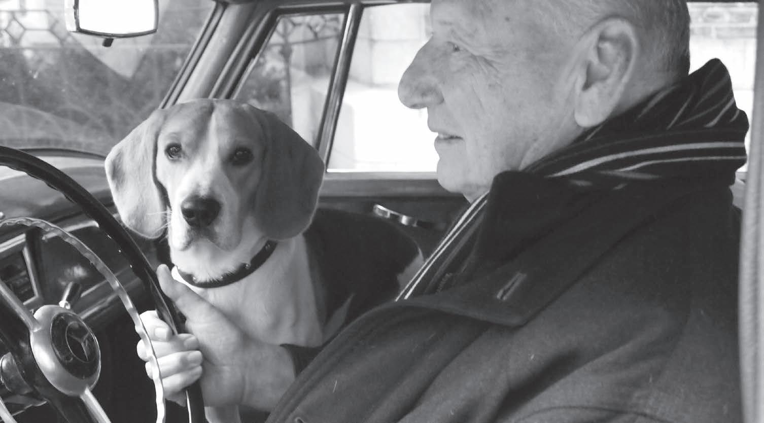Af en toe wrijven mensen in de wijk zich de ogen uit want als hij passeert vallen er twee dingen op : dit voertuig uit 1953 ziet er nog schitterend uit en zijn twintig jaar ouder dan bestuurder oogt even fantastisch. Een oogverblindend duo aangevuld door een …hond. Foto Jörg PYL