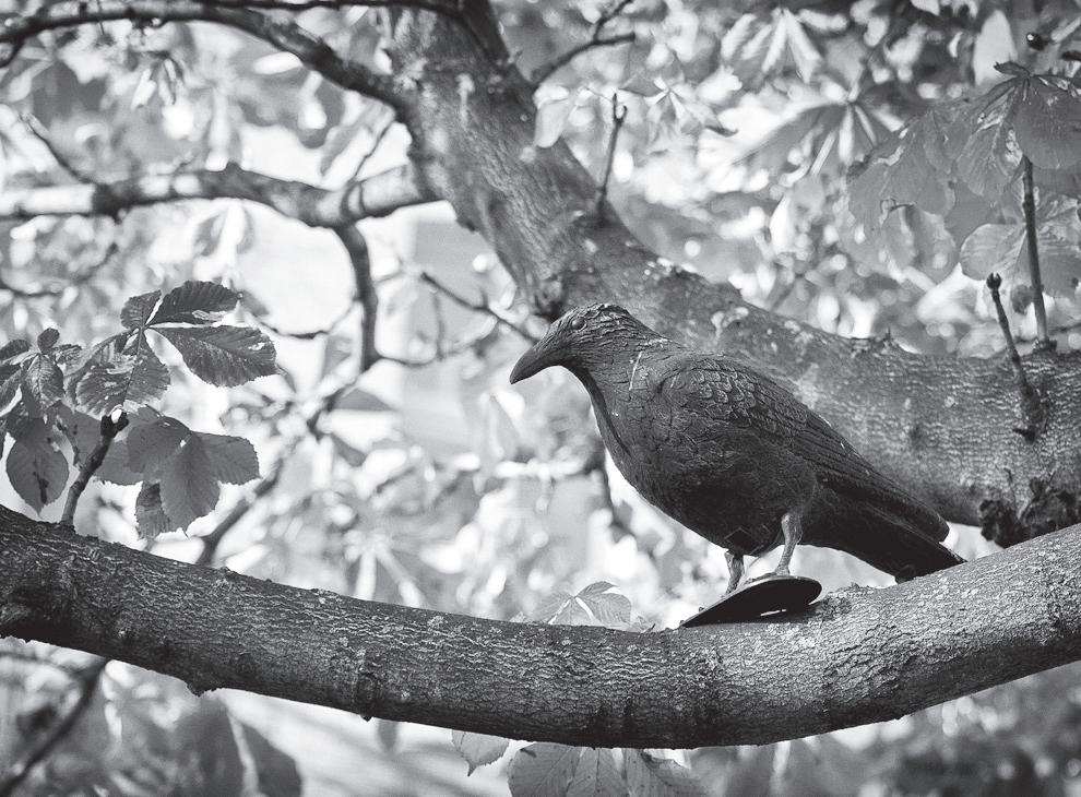en ontdek dat er daar een schoen aan een touwtje in het zwerk zweeft. Echte kunst van een nobele onbekende kunstenaar ? Is er een boodschap? Wat wil die schoen ons zeggen? Veegt men zijn voeten aan iets? Wie weet het? Of zou het gewoon iemand zijn die verdomd goed kon mikken? tijdens het bomenfestival op de dageraadplaats werd speciaal aandacht besteed aan paul de laet. • (foto Archief GvZ)