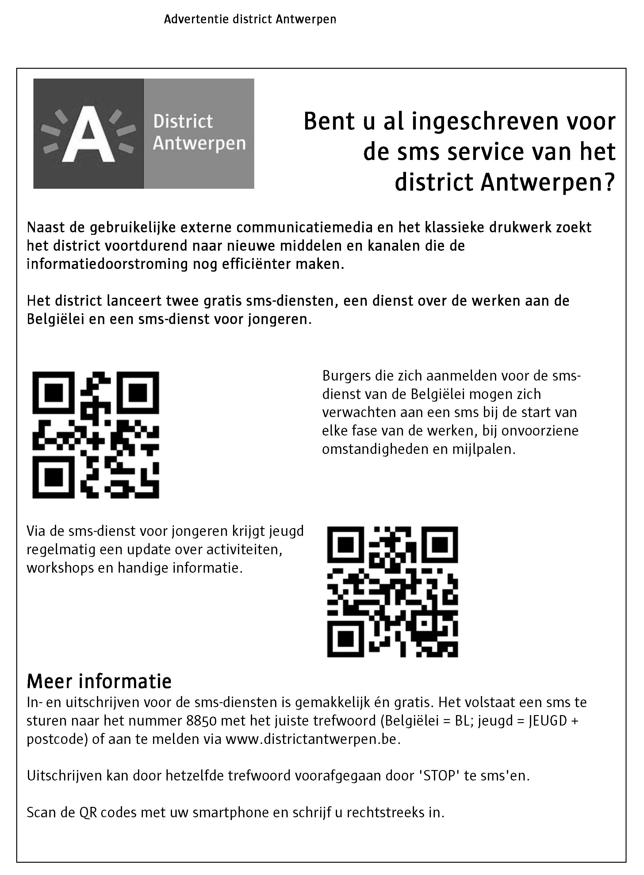 Het district Antwerpen heeft twee nieuwe sms-diensten waaronder eentje voor jongeren.