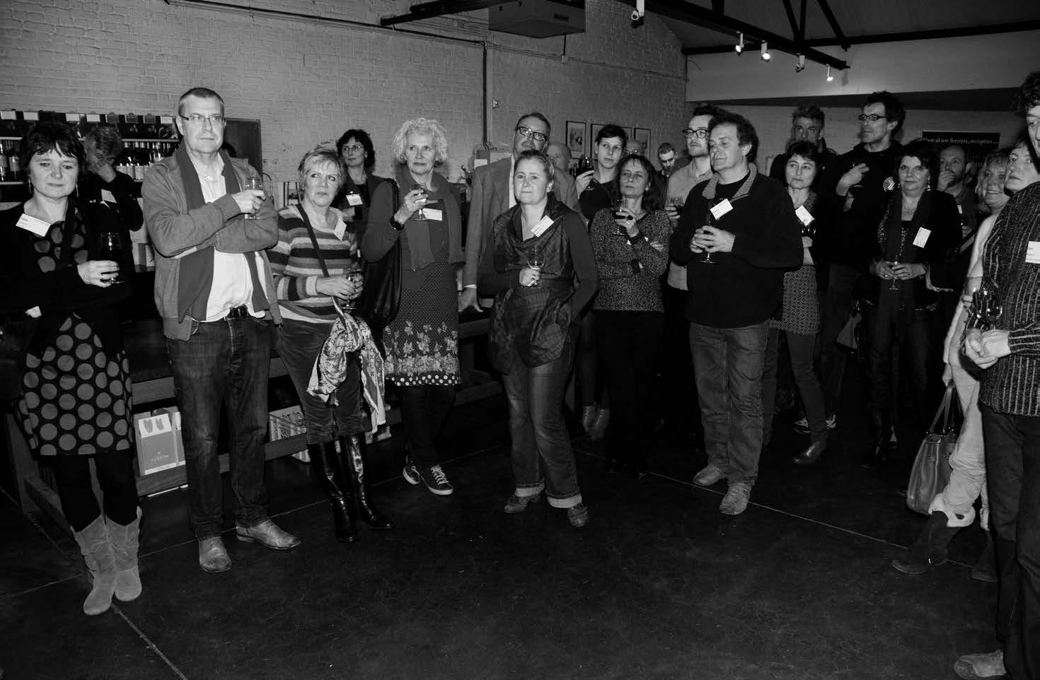 uitdragers, redactieleden, adverteerders luisteren in de wijnhandel de heerlyckheid naar de toespraken. • Foto’s An van de WAl