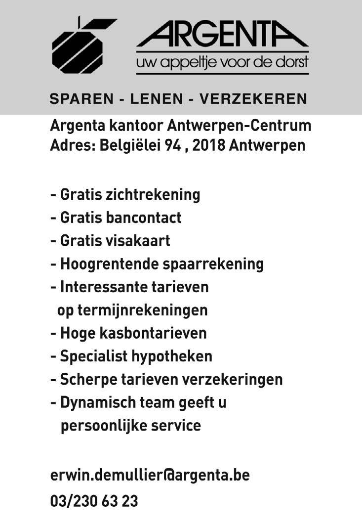 40 Gazet van Zurenborg | December 2012 - Januari 2013 |ww.gazetvanzurenborg.be dageraadplaats 8 antwerpen 03.235.52.41 eenvoudig*niet duur*maar heel apart